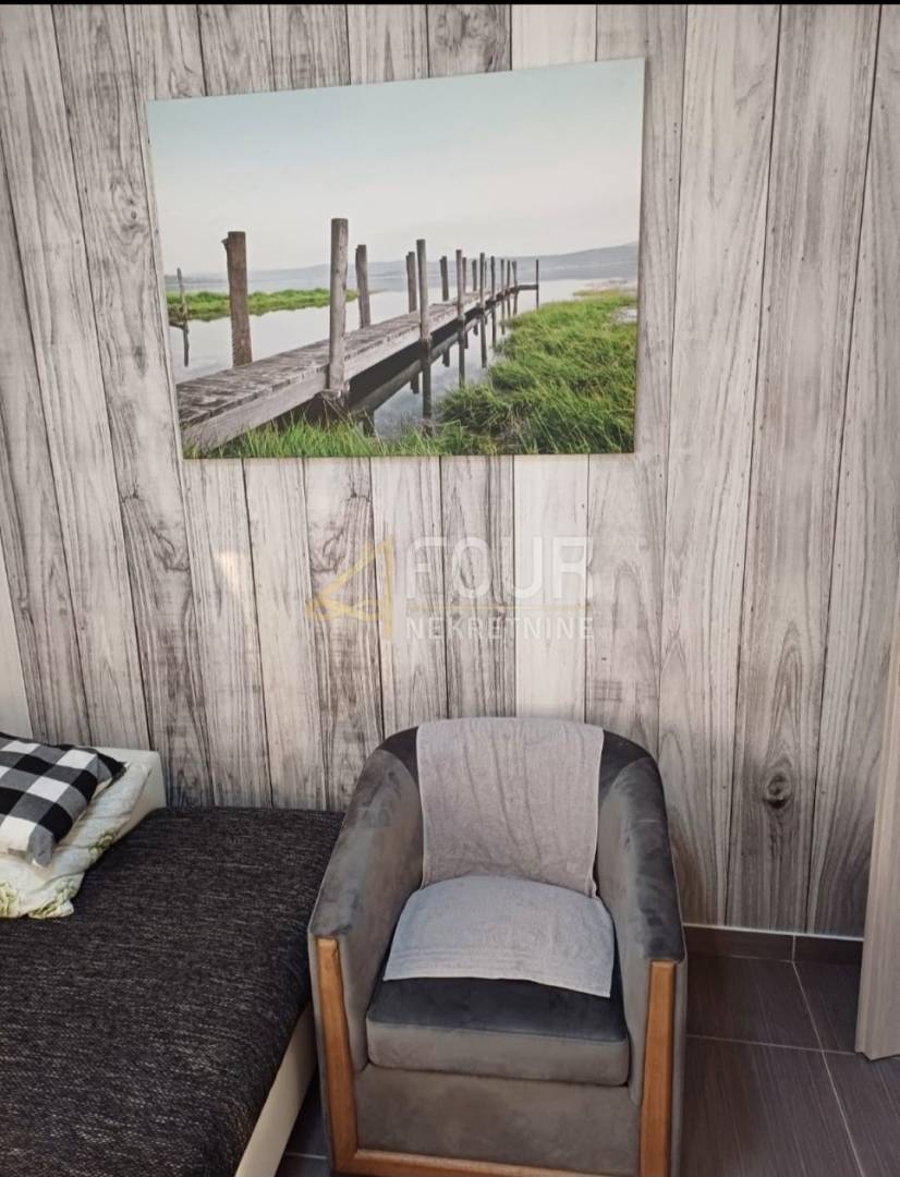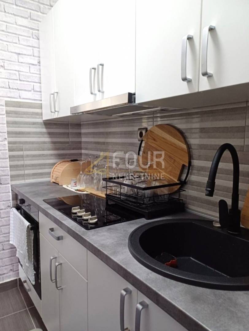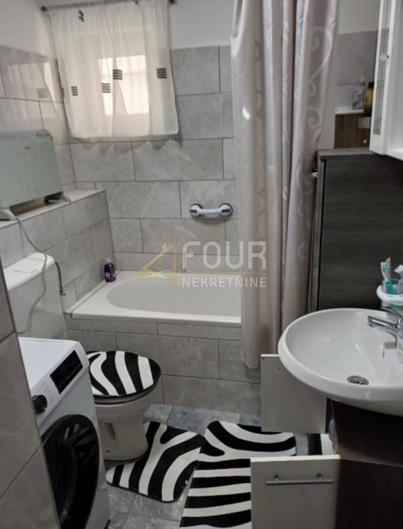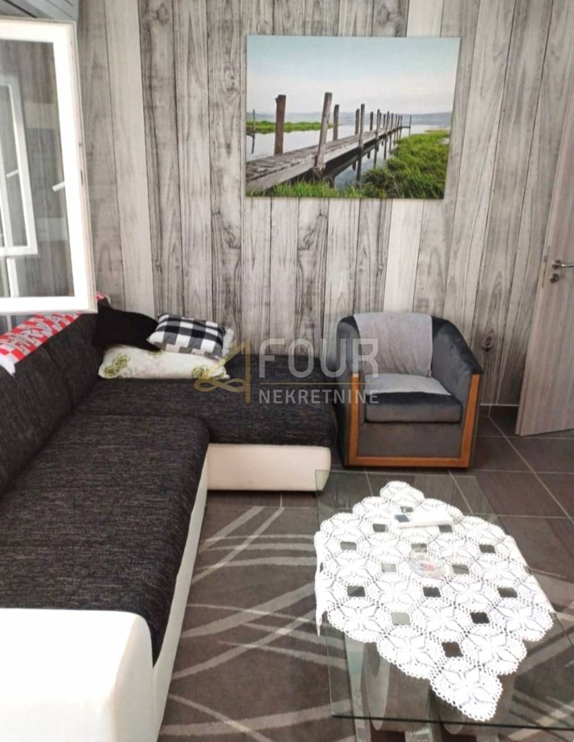 Prostor je funkcionalno raspoređen – sastoji se od hodnika, kupaonice, kuhinje, dnevnog boravka i terase. U izvornom je stanju, ali s novom keramikom i redovito održavan. Opremljen je PVC stolarijom, klimom i ima dimnjak koji omogućuje ugradnju peći na drva ili pelete po želji budućeg vlasnika.