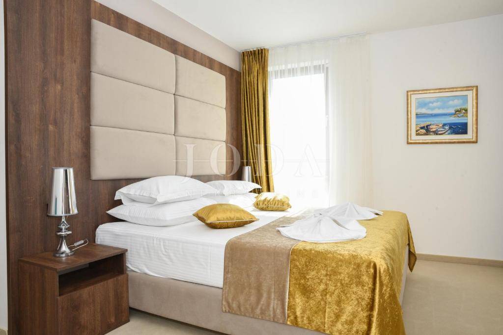 U prizemlju hotela se nalazi restoran sa terasom, kuhinja, toalet za osoblje, spremište, lift, skladište, recepcija, toalet za goste, toalet za invalide, prostorija za presvlačenje beba i prostorija za čuvanje prtljage. Na gornjim etažama nalazi se 15 soba sa kupaonicama, spremište, vešeraj, ured i terasa. Hotel je u potpunosti klimatiziran, opremljen podnim grijanjem te ima solarno grijanje tople vode. Kupaonice su opremljene kvalitetnim sanitraijama i pločicama talijanoskog proizvođača Marazzi. Namještaj u restoranu te ormarići u kupaonicama napravljeni su po mjeri. Hotel iama parking te pristup za invalide. Nekretnina za investiciju. Mogućnost kupnje disca u suterenu za 400 000€.