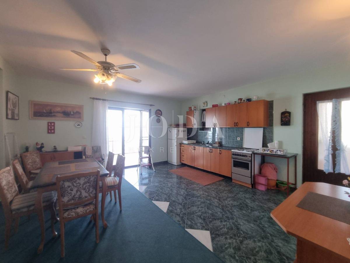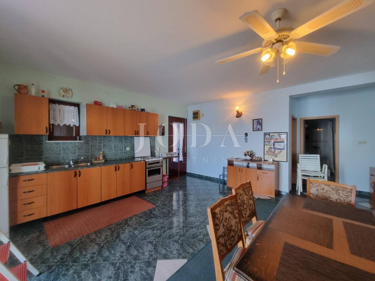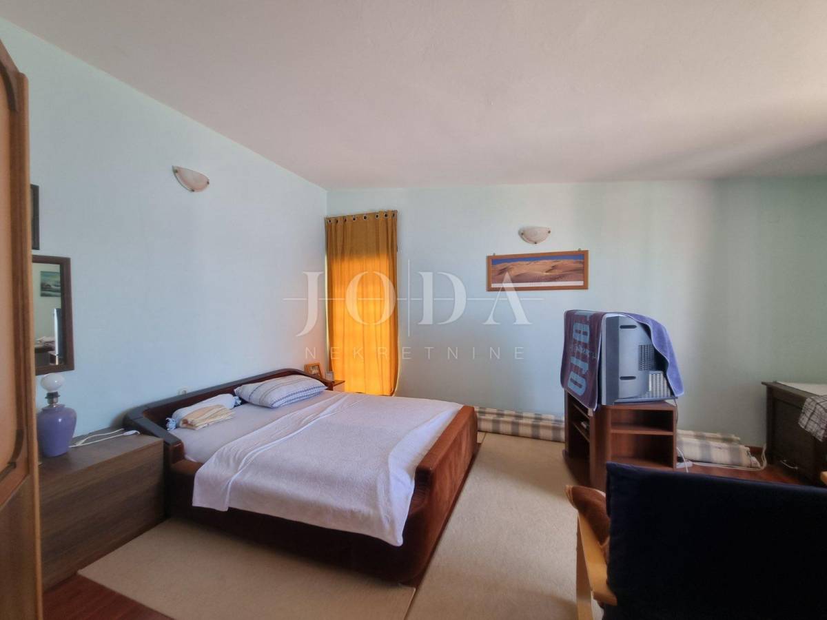 Prodajemo samostojeću kuću sa četiri stambne jedinice. U prizemlju kuće nalaze se dva jednosobna apartmana sa pripadajućim terasama i spremištem cijelom dužinom stražnjeg dijela kuće. Na prvom katu nalazi se ljetna kuhinja i stan koji se sastoji od ulaznog hodnika, dvije spavaće sobe, kuhinje sa blagovaonom,dnevog boravka, kupaone i prostrane natkrivene terase sa koje se pruža prekrasan pogled na more. Na drugom katu je identičan stan osim što ima još jednu kupaonu. Okućnica je uređena i održavana i osigurava parking za više automobila. Nekretnina za boravk preko cijele godine, ali i za turistički najam.