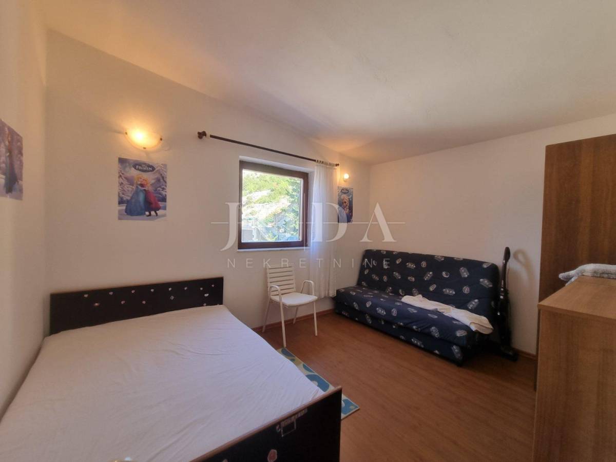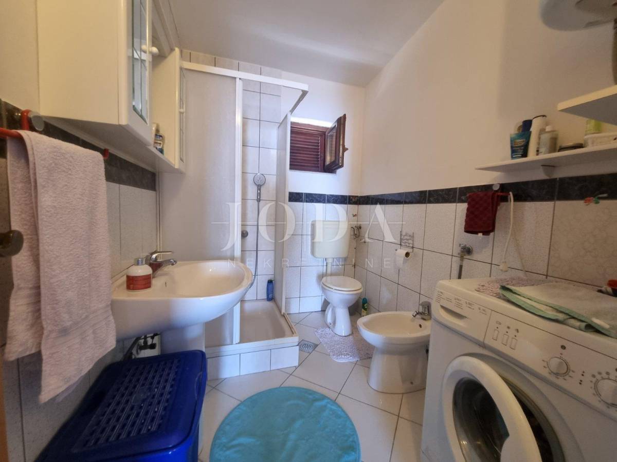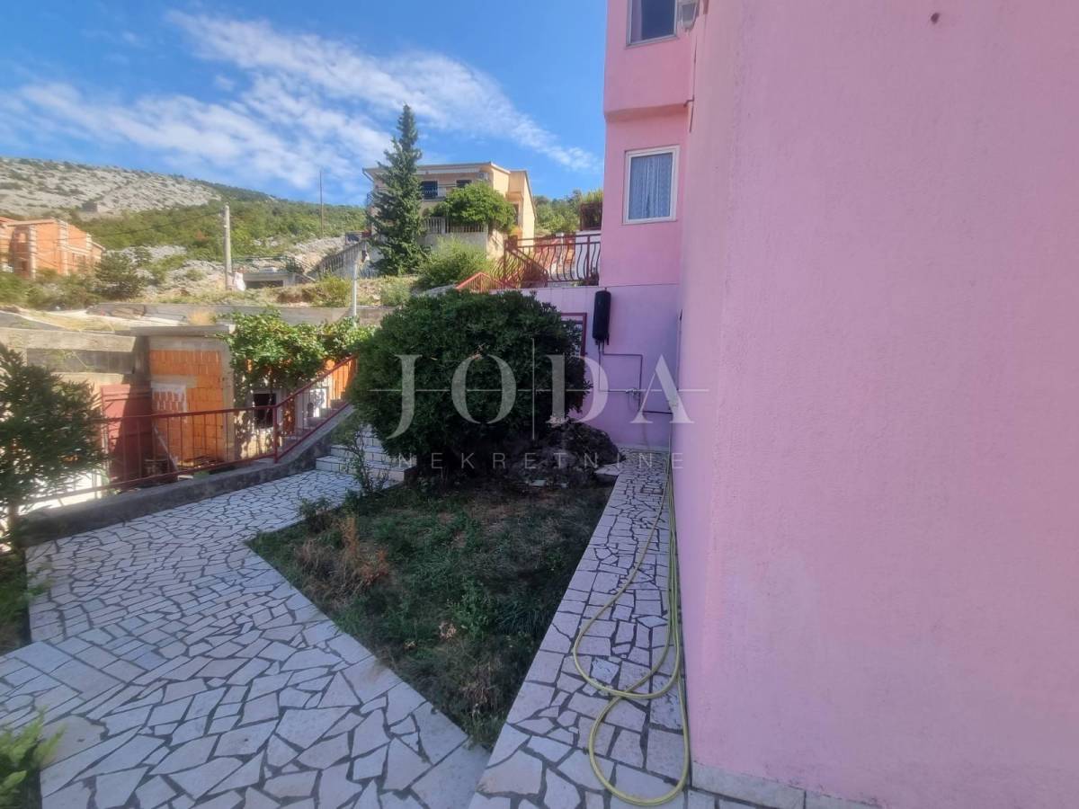 Prodajemo samostojeću kuću sa četiri stambne jedinice. U prizemlju kuće nalaze se dva jednosobna apartmana sa pripadajućim terasama i spremištem cijelom dužinom stražnjeg dijela kuće. Na prvom katu nalazi se ljetna kuhinja i stan koji se sastoji od ulaznog hodnika, dvije spavaće sobe, kuhinje sa blagovaonom,dnevog boravka, kupaone i prostrane natkrivene terase sa koje se pruža prekrasan pogled na more. Na drugom katu je identičan stan osim što ima još jednu kupaonu. Okućnica je uređena i održavana i osigurava parking za više automobila. Nekretnina za boravk preko cijele godine, ali i za turistički najam.