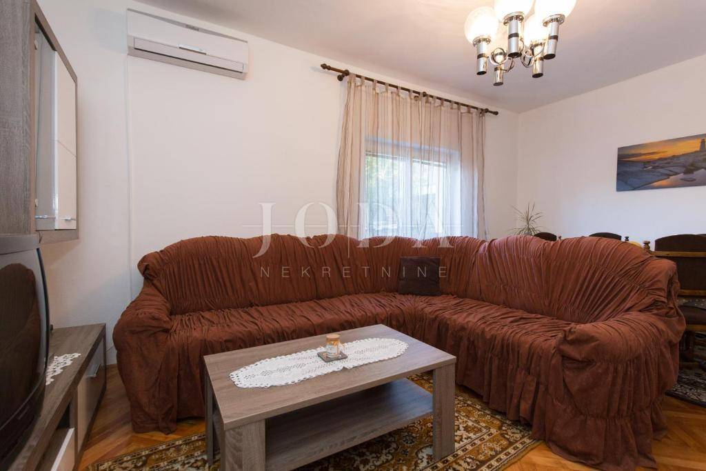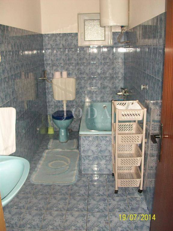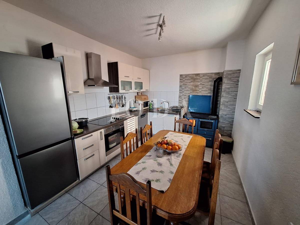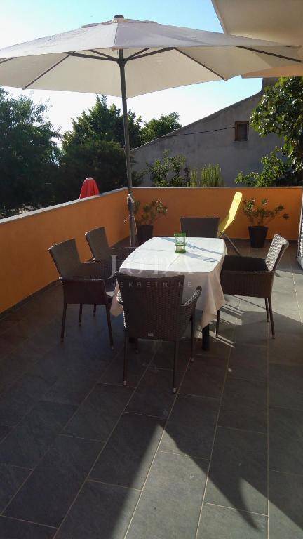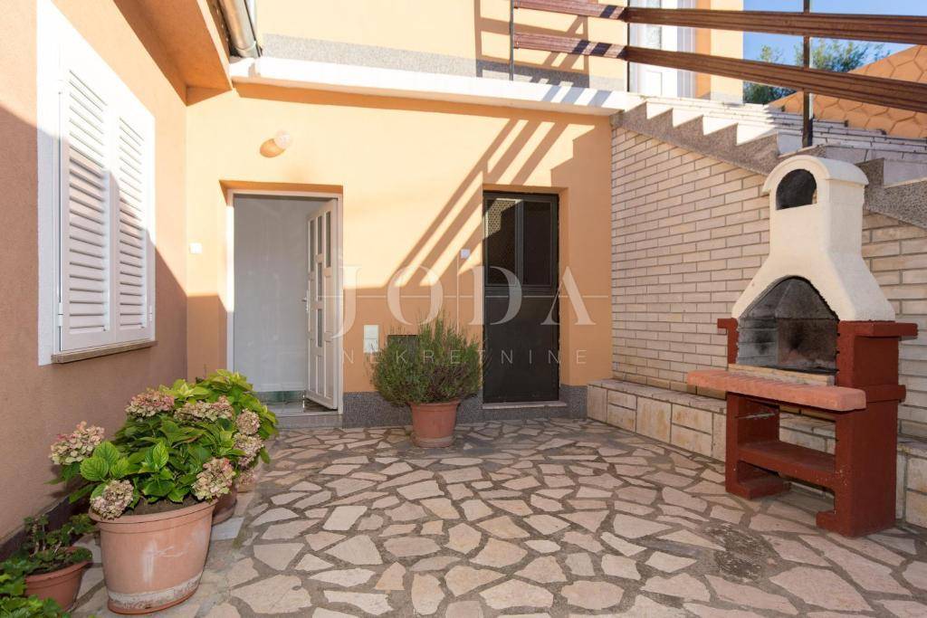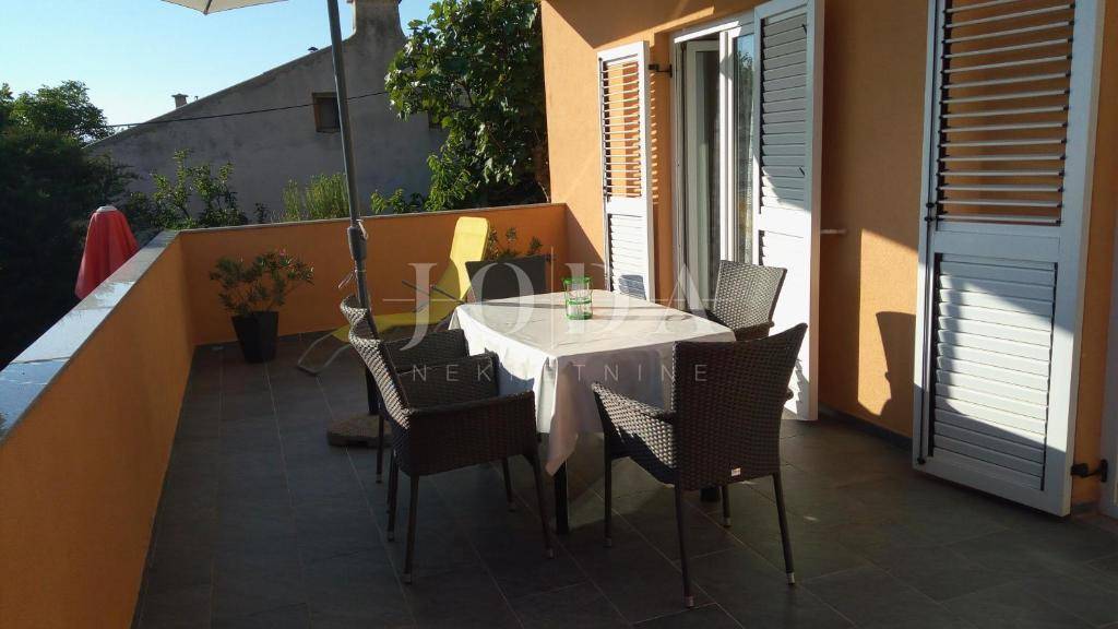 Prodajemo kuću na lijepoj i mirnoj lokaciji sa pogledom na more nedaleko od centra grada. Kuća se sastoji od dvije stambene jedinice. U prizemlju je stan koji se sastoji od pred prostora ,kuhinje s dnevnim boravkom, dvije spavaće sobe, kupaonice, prostrane terase i drvanice. Vanjskim stpenicama ide se na kat, gdje se nalazi stan, koji se sastoji od dva pred prostora, kuhinje sa blagovanom, dnevnog boravka iz kojeg se izlazi na balkon sa kojeg se pruža prekrasan pogled na more te tri spavaće sobe i kupaone. Unutar okućnice nalazi se parkino mjesto i ljetna kuhinja sa kupaonom. Kuća ima termo fasadu i novi krov. Nekrtnina za život preko cijele godine, ali i za turizam.