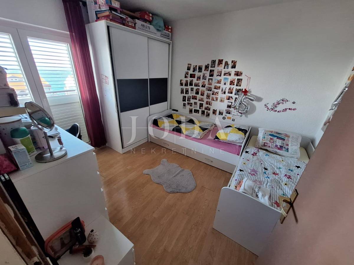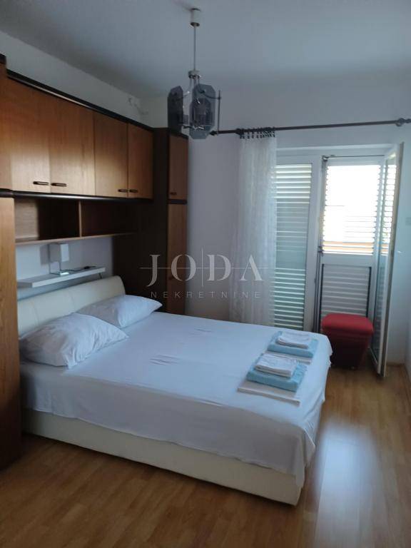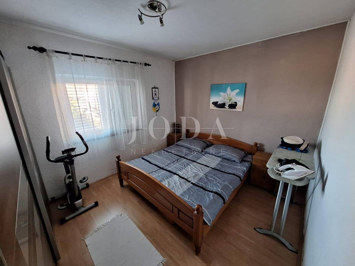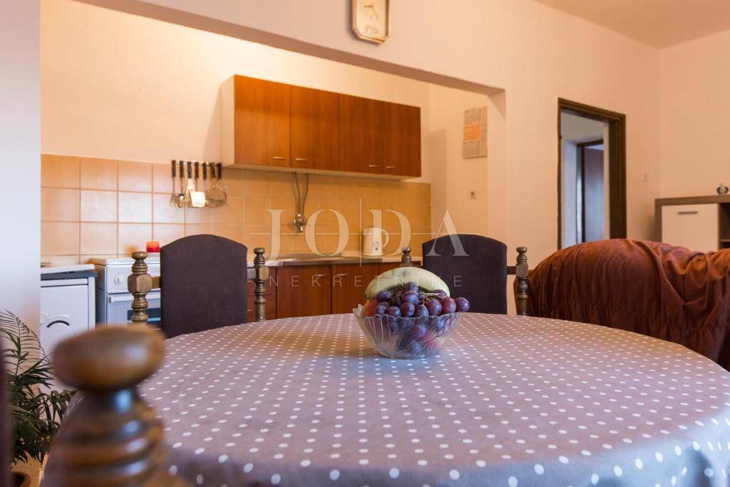 Prodajemo kuću na lijepoj i mirnoj lokaciji sa pogledom na more nedaleko od centra grada. Kuća se sastoji od dvije stambene jedinice. U prizemlju je stan koji se sastoji od pred prostora ,kuhinje s dnevnim boravkom, dvije spavaće sobe, kupaonice, prostrane terase i drvanice. Vanjskim stpenicama ide se na kat, gdje se nalazi stan, koji se sastoji od dva pred prostora, kuhinje sa blagovanom, dnevnog boravka iz kojeg se izlazi na balkon sa kojeg se pruža prekrasan pogled na more te tri spavaće sobe i kupaone. Unutar okućnice nalazi se parkino mjesto i ljetna kuhinja sa kupaonom. Kuća ima termo fasadu i novi krov. Nekrtnina za život preko cijele godine, ali i za turizam.