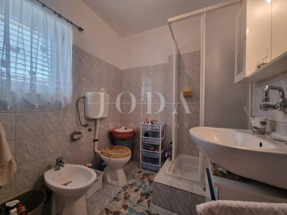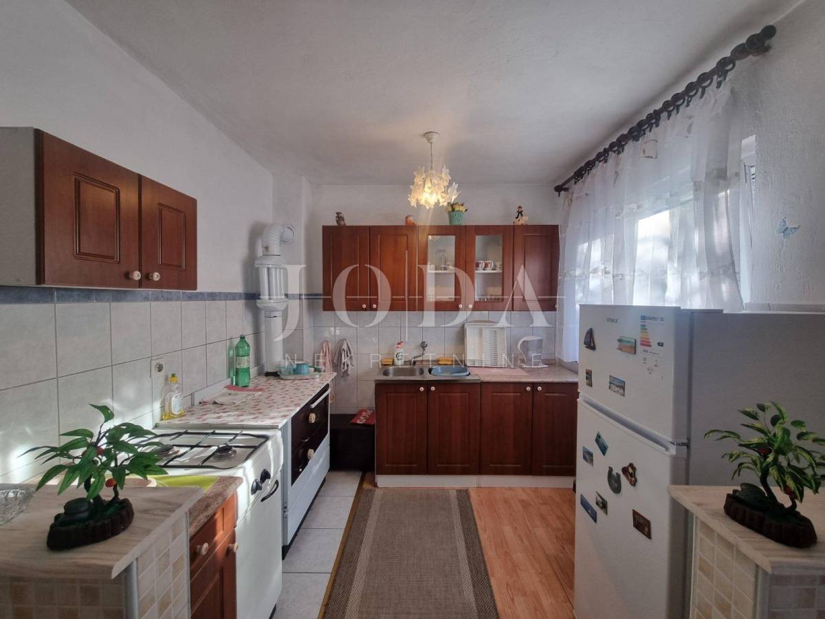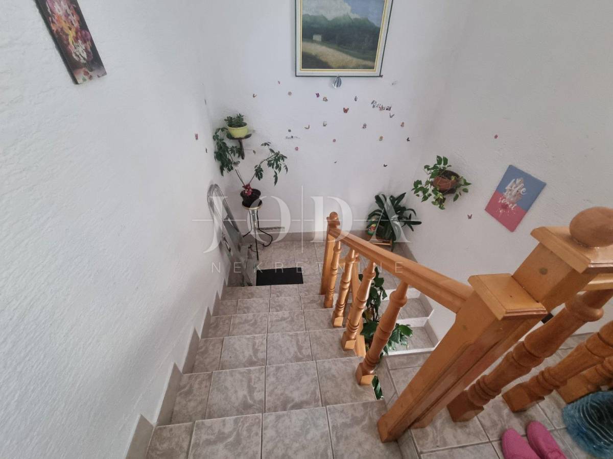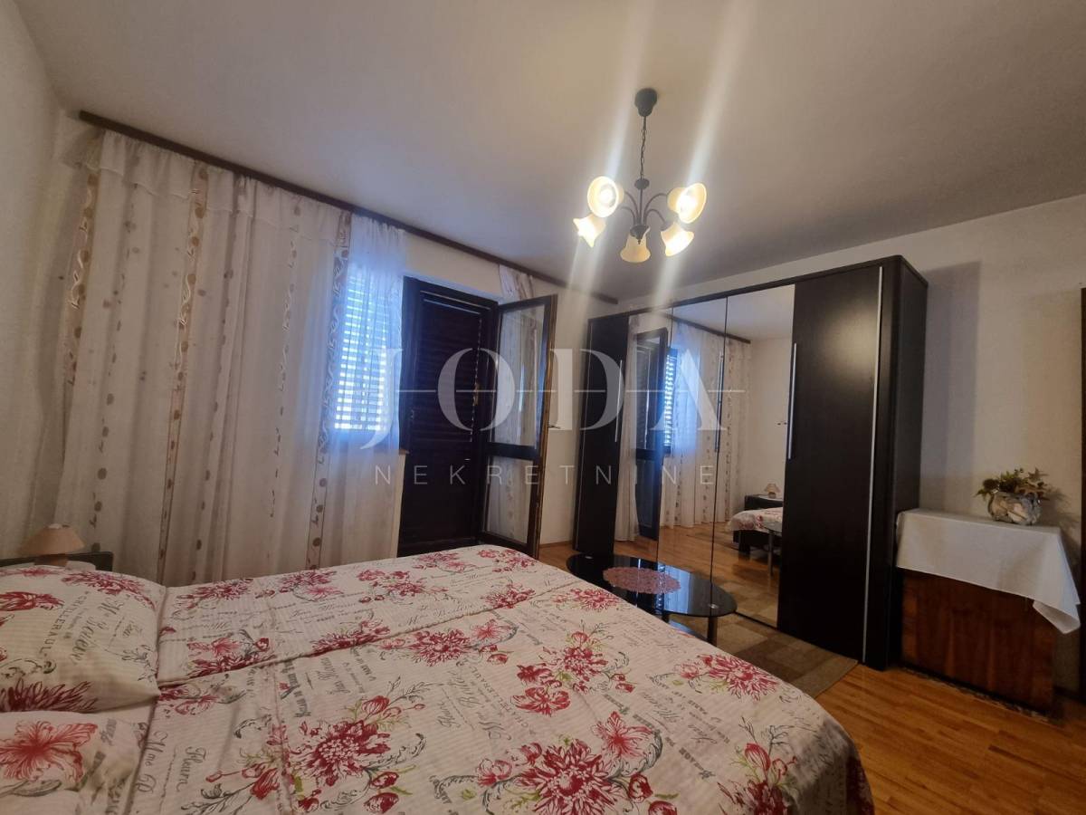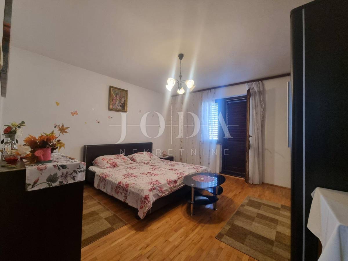 Prodajemo obiteljsku kuću sa dva stana na mirnoj lokaciji. Kuća se sastoji od suterena, prizemlja i kata. U suterenu se nalazi podrum. U prizemlju se nalazi stana sa dvije spavaće sobe, dnevnim boravkom, kuhinjom, blagovaonom, ostavom, kupaonom i terasom. Unutarnjim stepenicama ide se na kat gdje se nalazi dvosobni stan sa izlazi na balkon sa kojeg se vidi more. Unutar okućnice nalazi se vrt i parking. Kuća je u potpunosti namještena i spremna za korištenje. Nekretnina idealna za život i turizam.