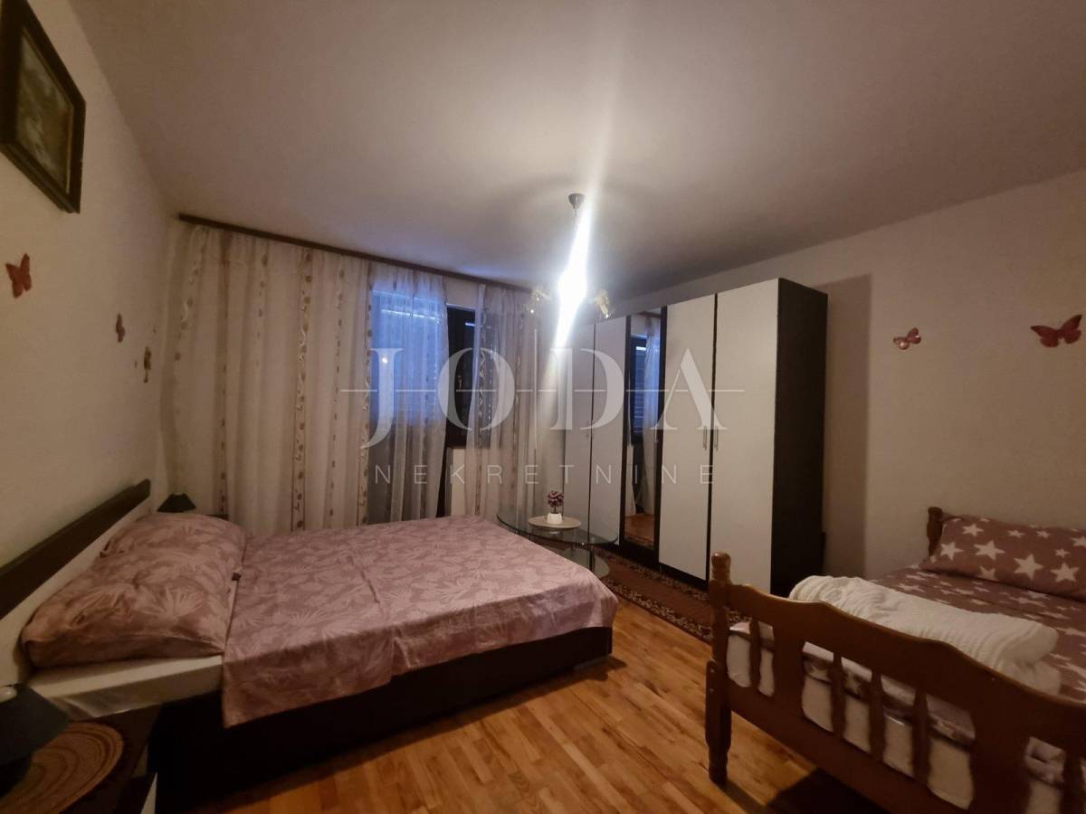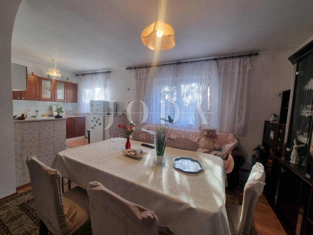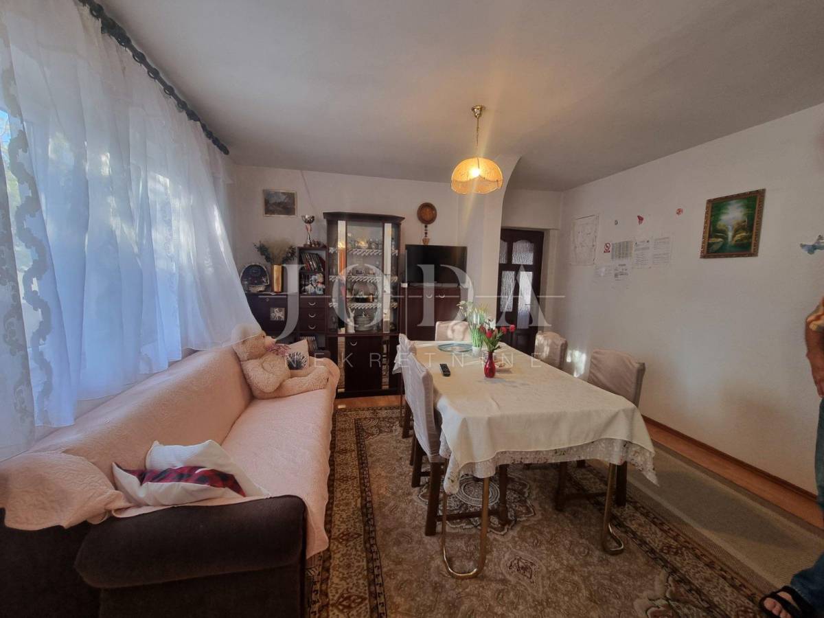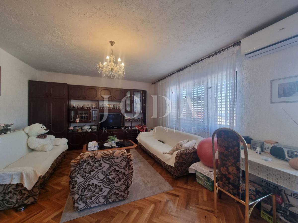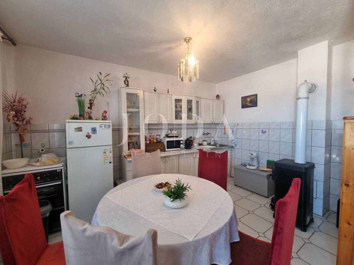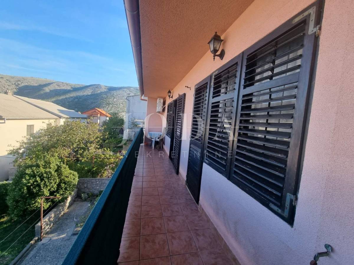 Prodajemo obiteljsku kuću sa dva stana na mirnoj lokaciji. Kuća se sastoji od suterena, prizemlja i kata. U suterenu se nalazi podrum. U prizemlju se nalazi stana sa dvije spavaće sobe, dnevnim boravkom, kuhinjom, blagovaonom, ostavom, kupaonom i terasom. Unutarnjim stepenicama ide se na kat gdje se nalazi dvosobni stan sa izlazi na balkon sa kojeg se vidi more. Unutar okućnice nalazi se vrt i parking. Kuća je u potpunosti namještena i spremna za korištenje. Nekretnina idealna za život i turizam.