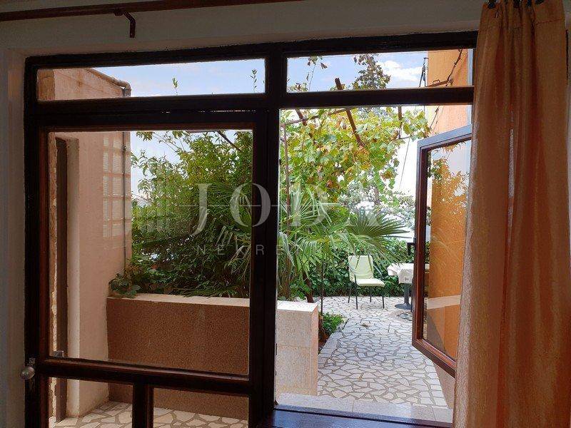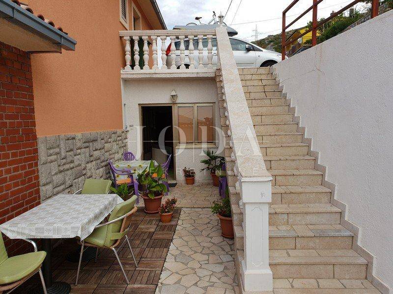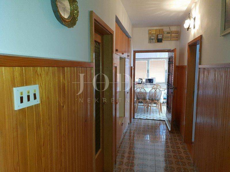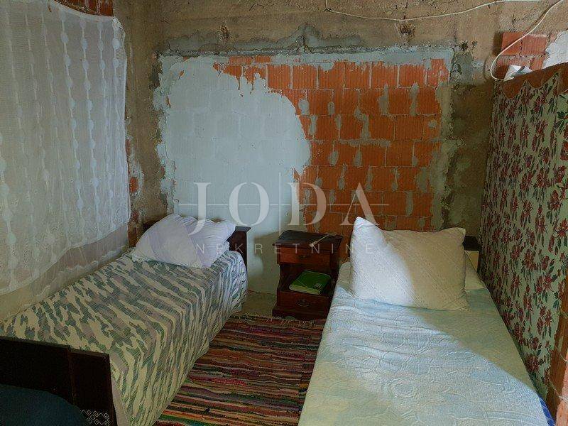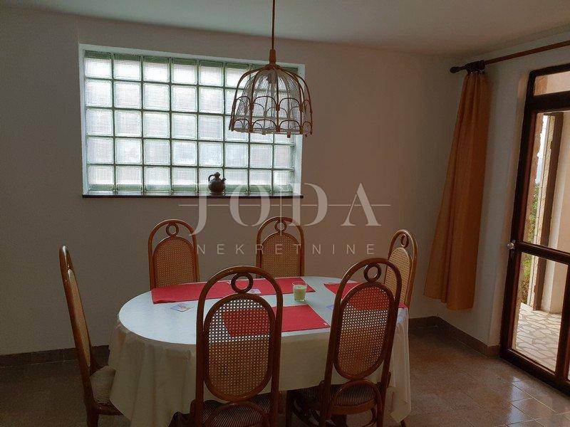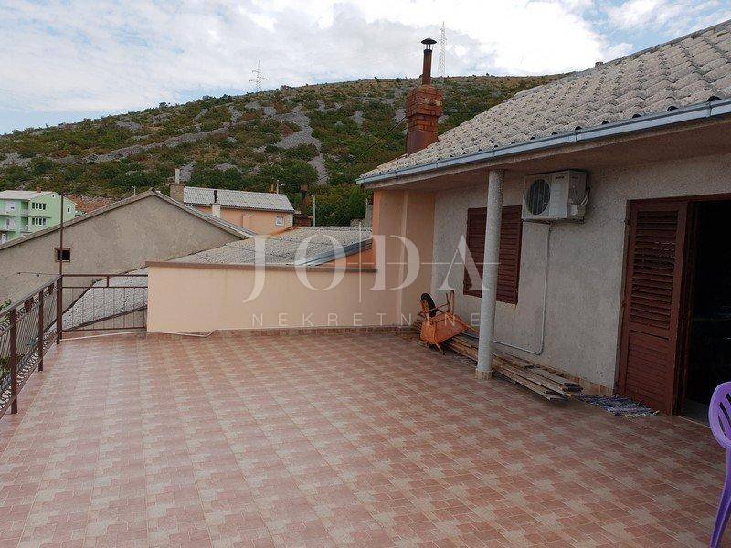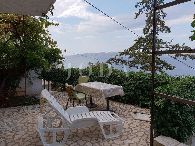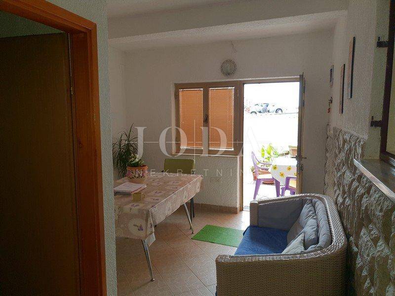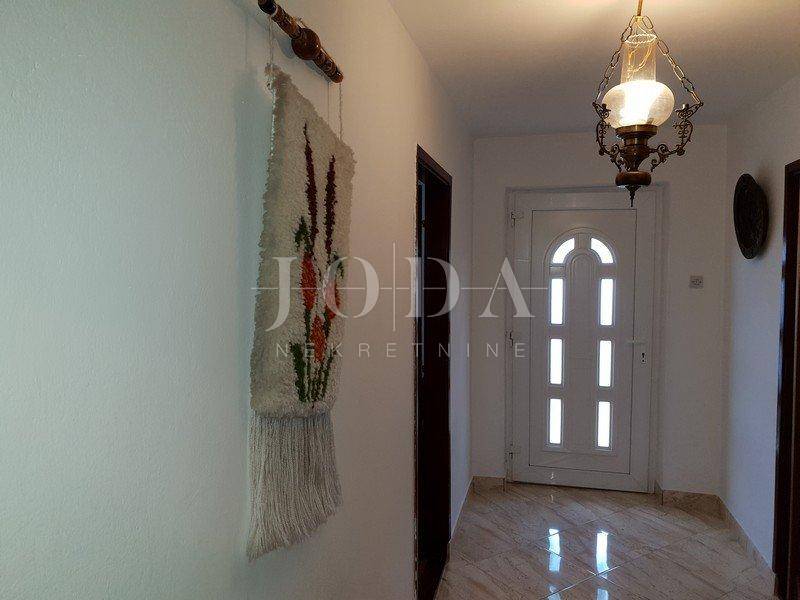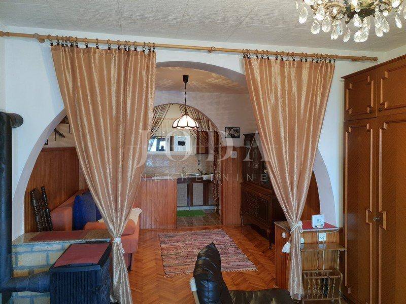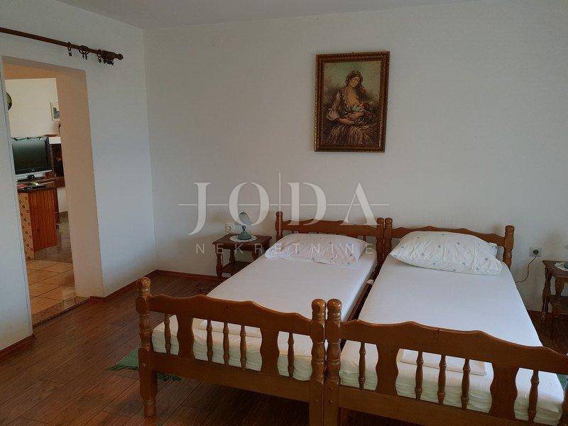 Kuća se sastoji od suterena, prizemlja i kata. Kući se pristupa sa prvog kata, gdje se nalaze dva parkirna mjesta. Prvi kat je nedovršen, ima 50 m2, te veliku terasu sa koje se pruža pogled na more. Vanjskim stubištem se dolazi do prizemlja, koje ima dva ulaza, a stan po dva dnevna boravka, dvije kuhinje, te dvije kupaonice, tako da se može podijeliti u dva zasebna stana. U suterenu se nalazi stan sa dnevnim boravkom, kuhinjom dvije spavaće sobe i kupaonice. Ima izlaz na lijepu terasu, a ispod terase je manji vrt, te vrtna kućica. Mirna lokacija sa prekrasnim pogledom na more.
