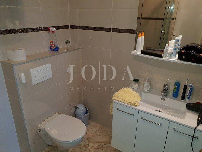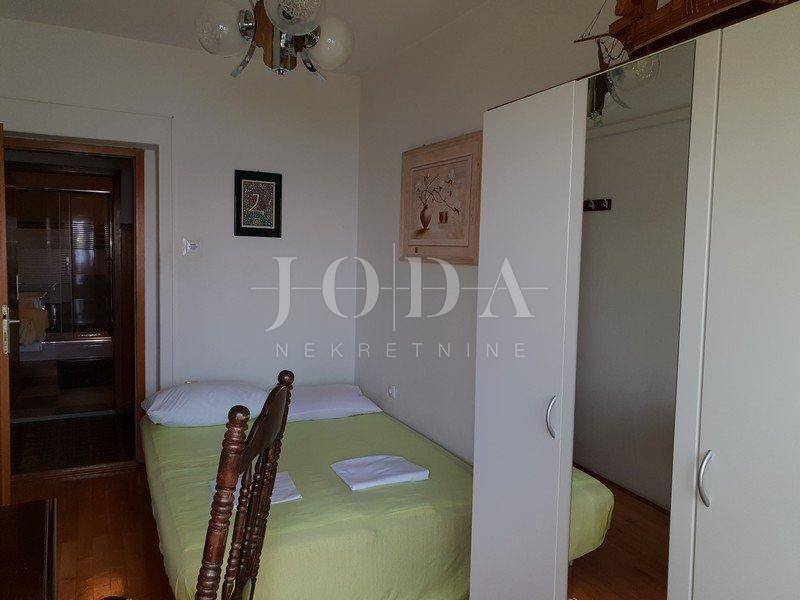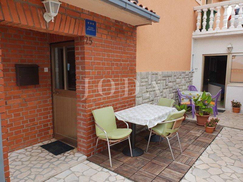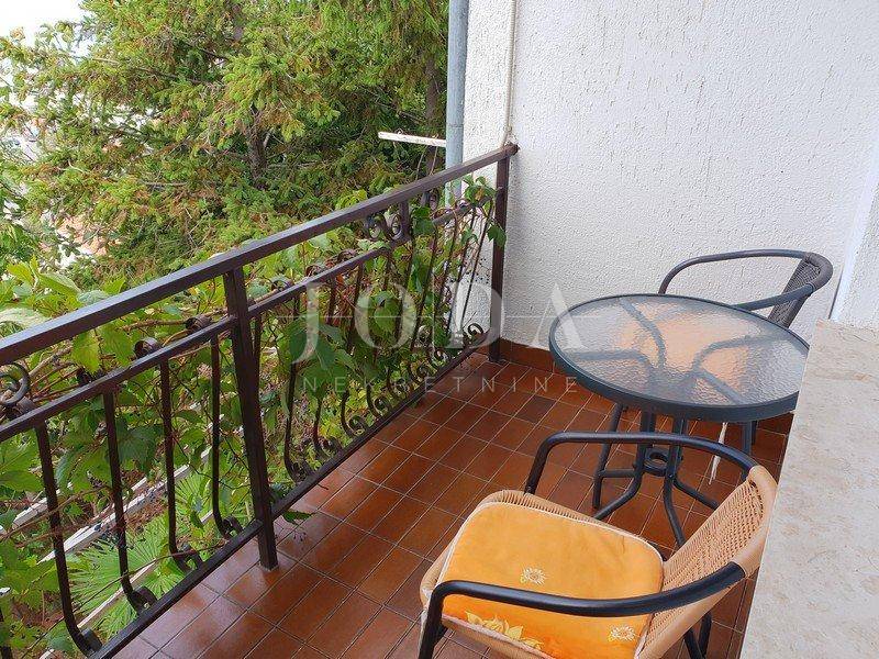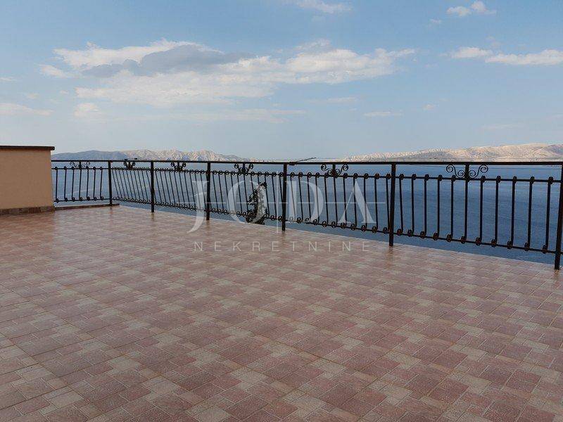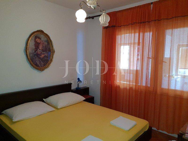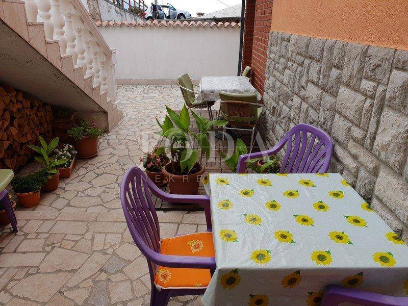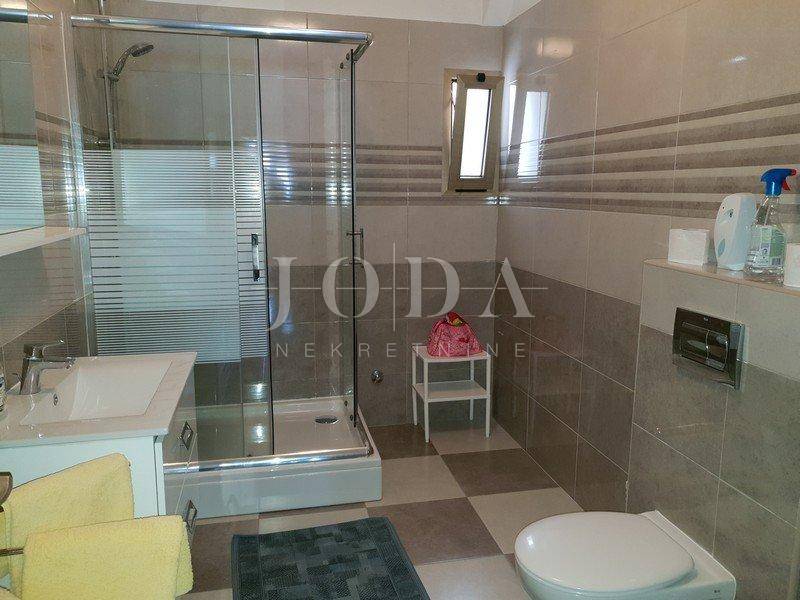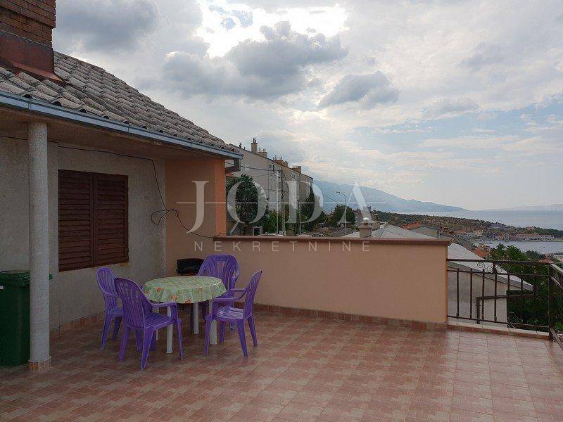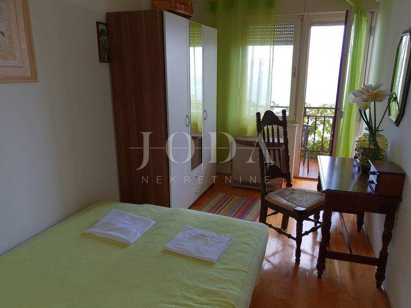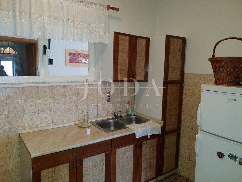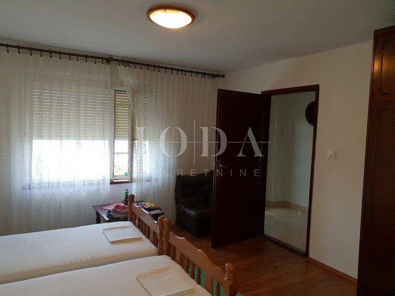 Kuća se sastoji od suterena, prizemlja i kata. Kući se pristupa sa prvog kata, gdje se nalaze dva parkirna mjesta. Prvi kat je nedovršen, ima 50 m2, te veliku terasu sa koje se pruža pogled na more. Vanjskim stubištem se dolazi do prizemlja, koje ima dva ulaza, a stan po dva dnevna boravka, dvije kuhinje, te dvije kupaonice, tako da se može podijeliti u dva zasebna stana. U suterenu se nalazi stan sa dnevnim boravkom, kuhinjom dvije spavaće sobe i kupaonice. Ima izlaz na lijepu terasu, a ispod terase je manji vrt, te vrtna kućica. Mirna lokacija sa prekrasnim pogledom na more.