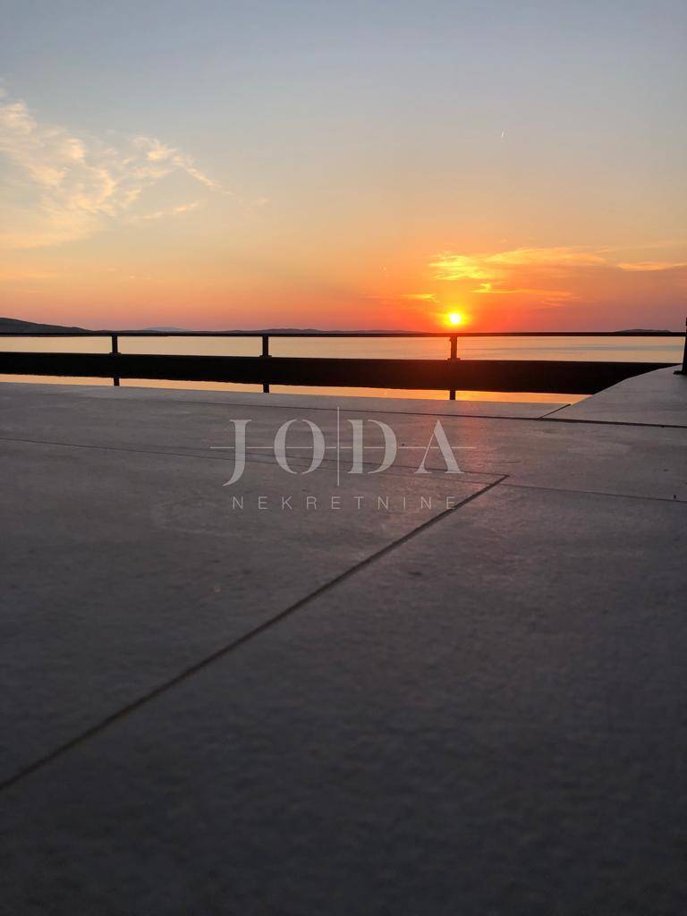 U prizemlju kuće je otvoreni prostor dnevnog boravka ,kuhinje i blagavaonice sa izlazom na terasu unutar koje dominira bazen sa spektakularnim pogledom na more.