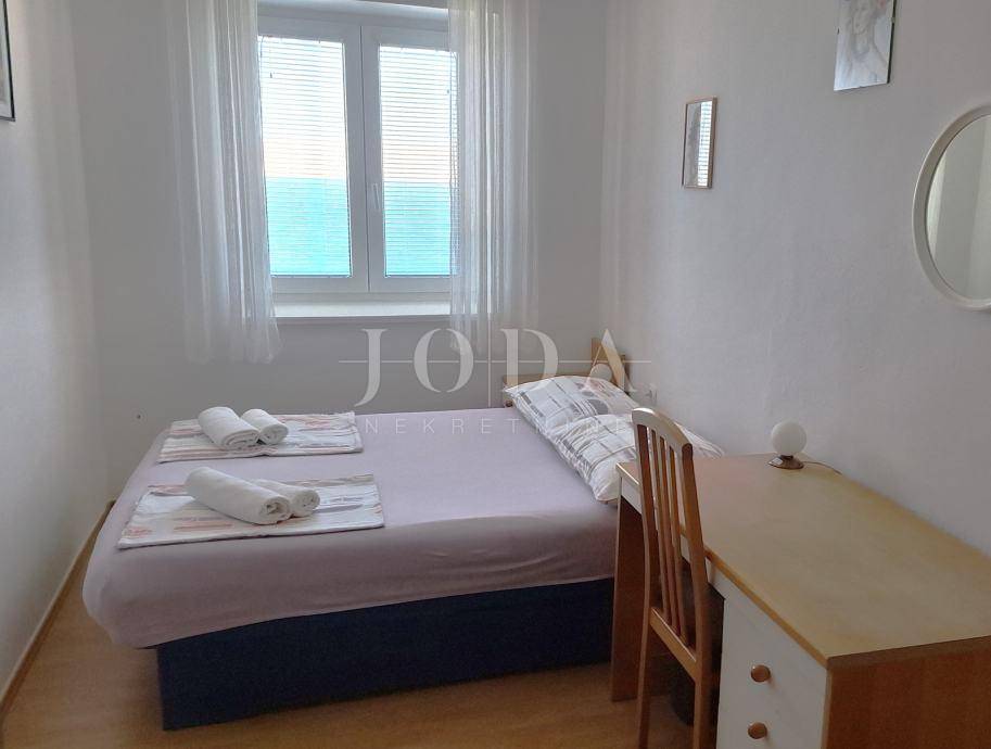 Prodaje se lijepo uređen i namješten stan površine 64,47 m², smješten na trećem katu stambene zgrade. Stan se sastoji od kuhinje povezane s dnevnim boravkom, dvije spavaće sobe, hodnika, ostave, kupaonice te balkona s prekrasnim pogledom. Udaljen je svega 100 metara od mora, što ga čini idealnim izborom za odmor, ali i za cjelogodišnje stanovanje. Stan je klimatiziran i potpuno namješten, spreman za useljenje bez dodatnih ulaganja. Uz stab dolazi i drarnica u sutrenu zgrade.