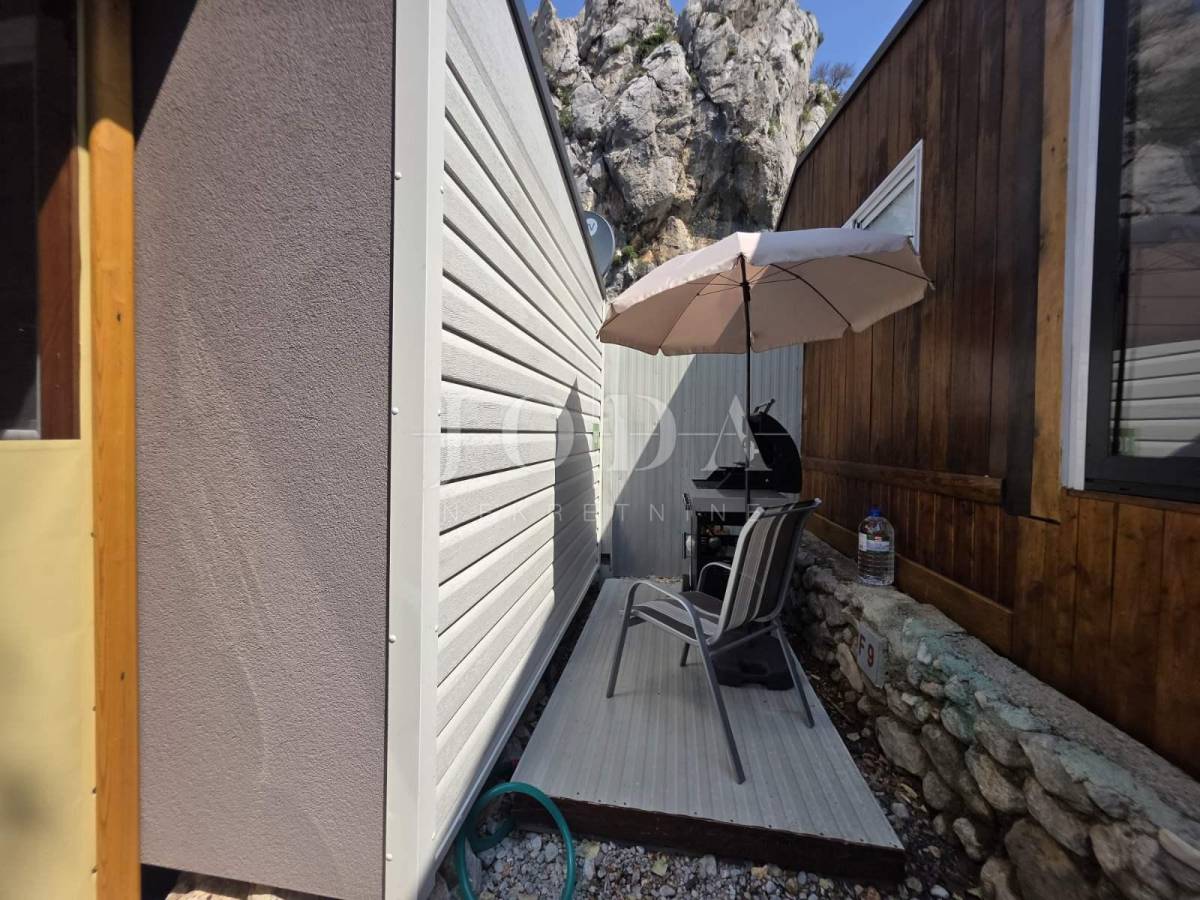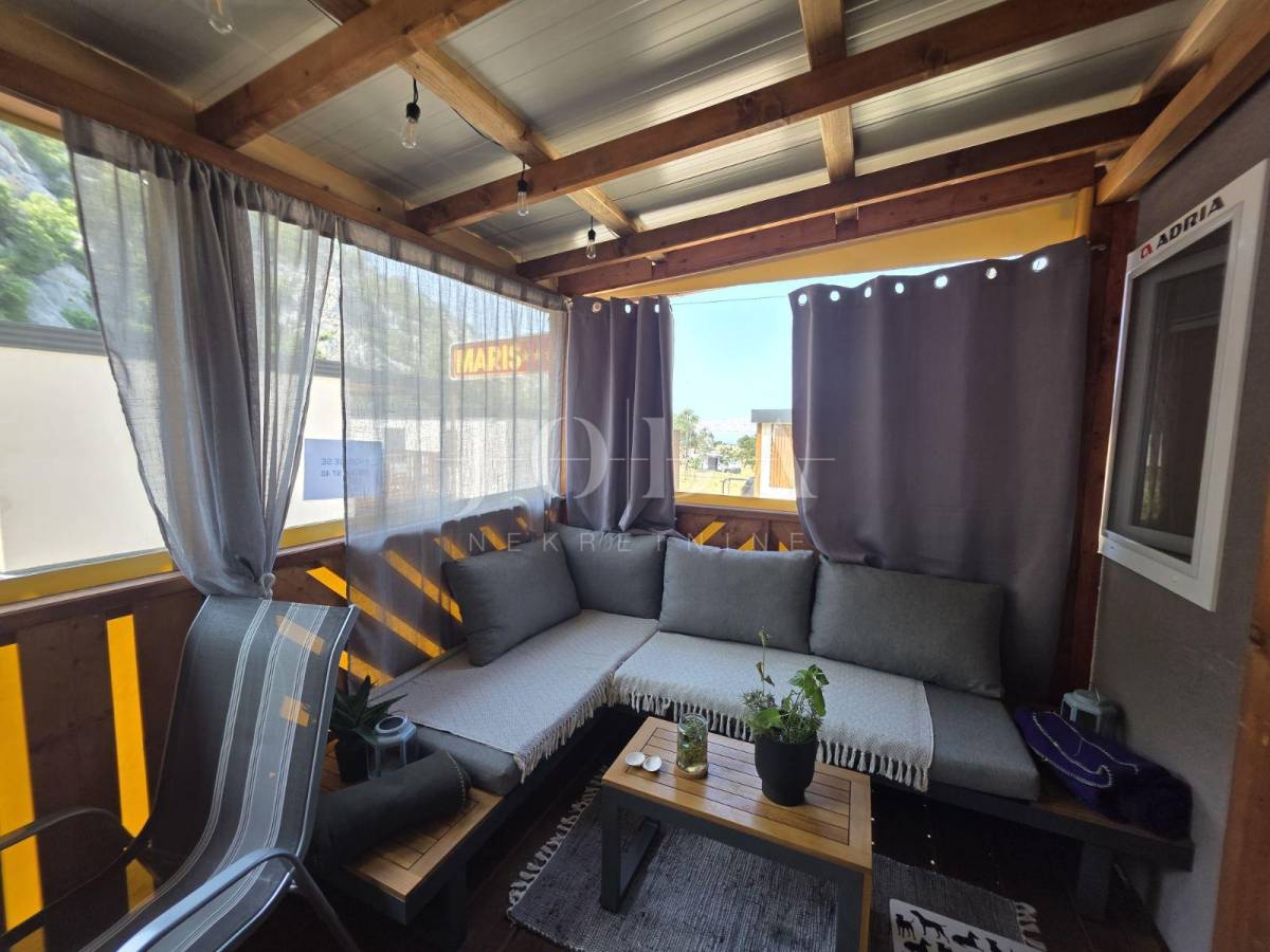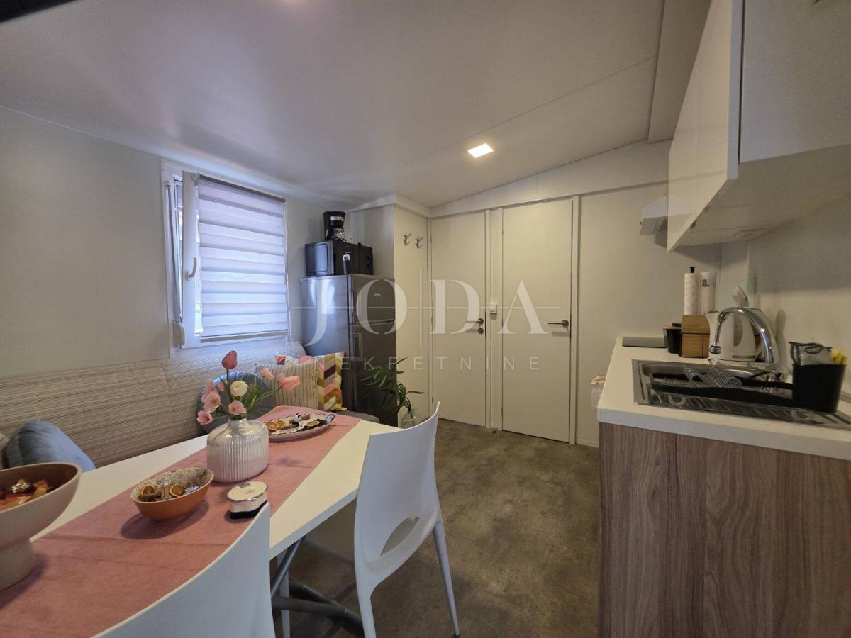 Prodajemo mobilnu kućicu u kampu. Kućica je u potpunosti namještena sa grijanjem/hlađenjem i spremna za korištenje. Sastoji se od dvije spavaće sobe, kuhinje,kupaone, natkrivene i ograđene terase. Unutarnje površine 3x8m2 te vanjske 2,5x6,5m2. Plaćen paušal (4000€+pdv) do 21.5.26. godine. Parking ispred kuće i ne plaća se. Ugovor sa kampom sklopljen na 4 godine.Struja/voda/smeće uključeno je u cijeni godišnjeg paušala, nema nikakvih drugih troškova. Blizina mora!