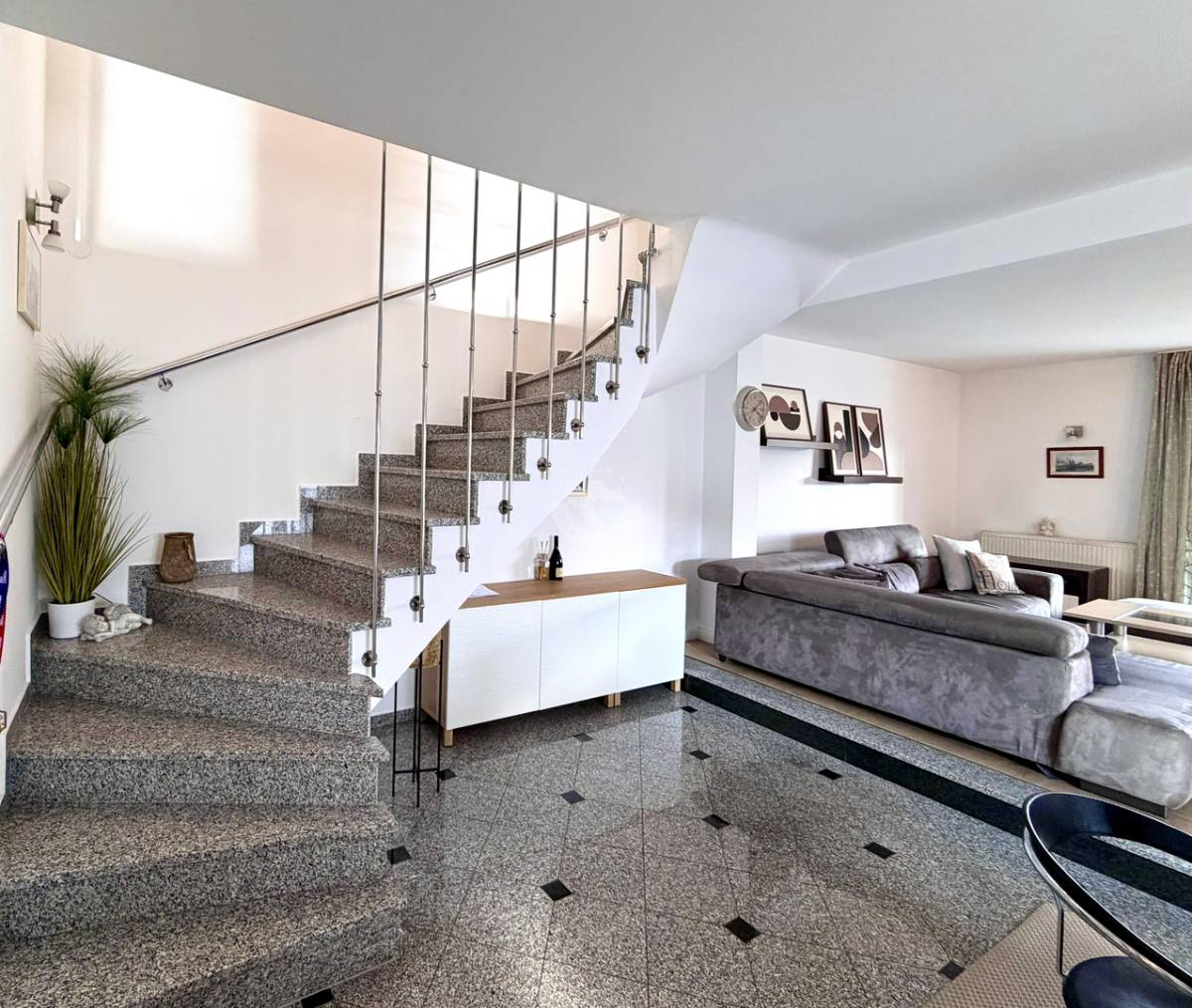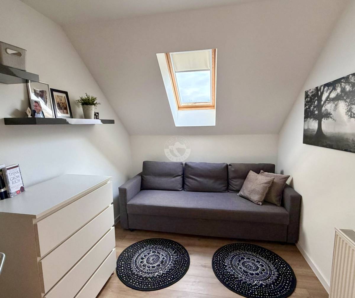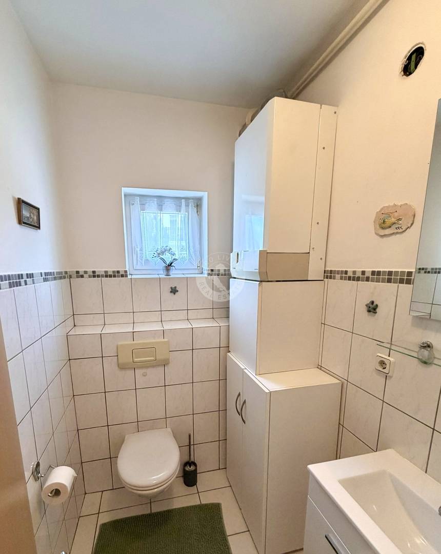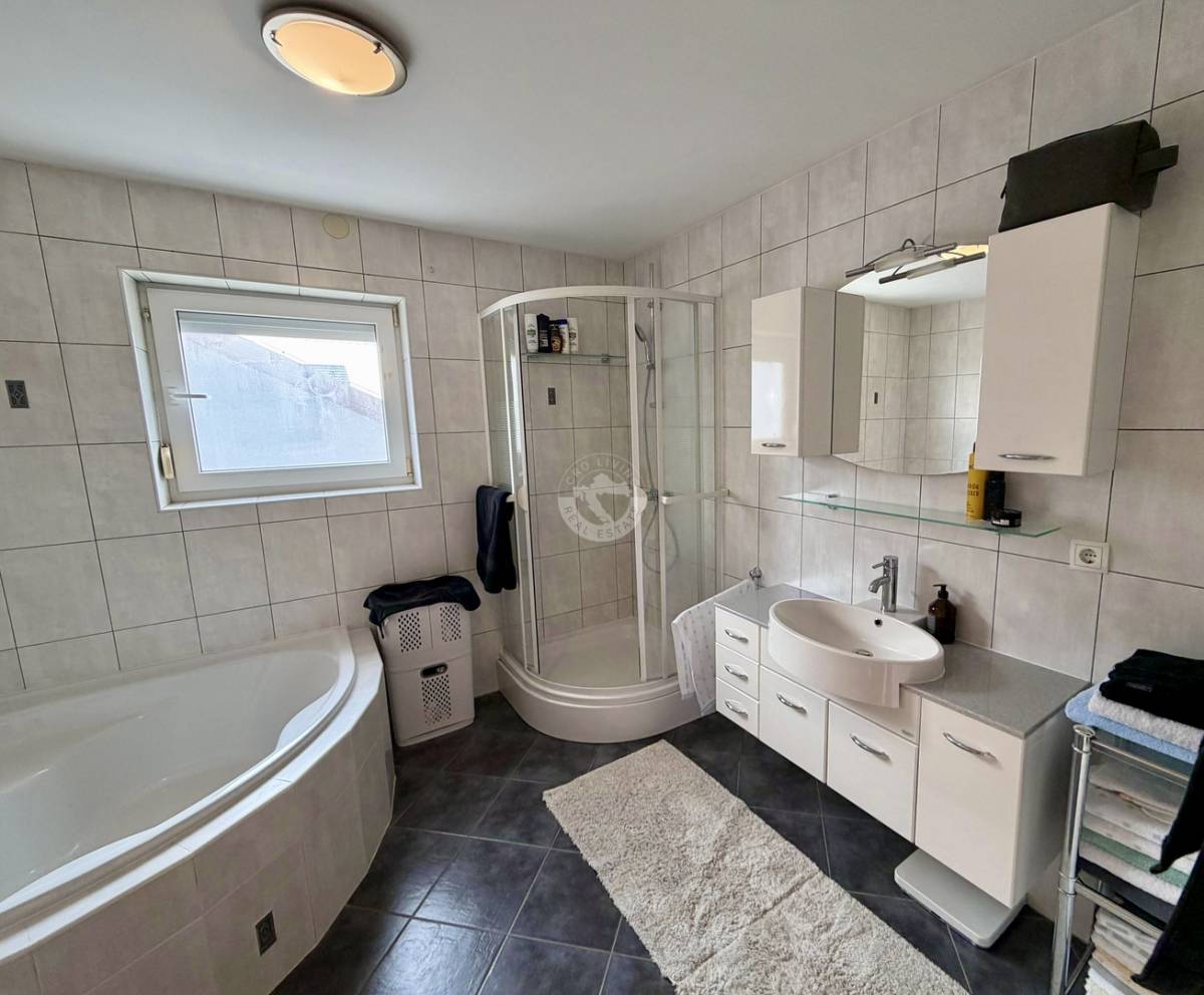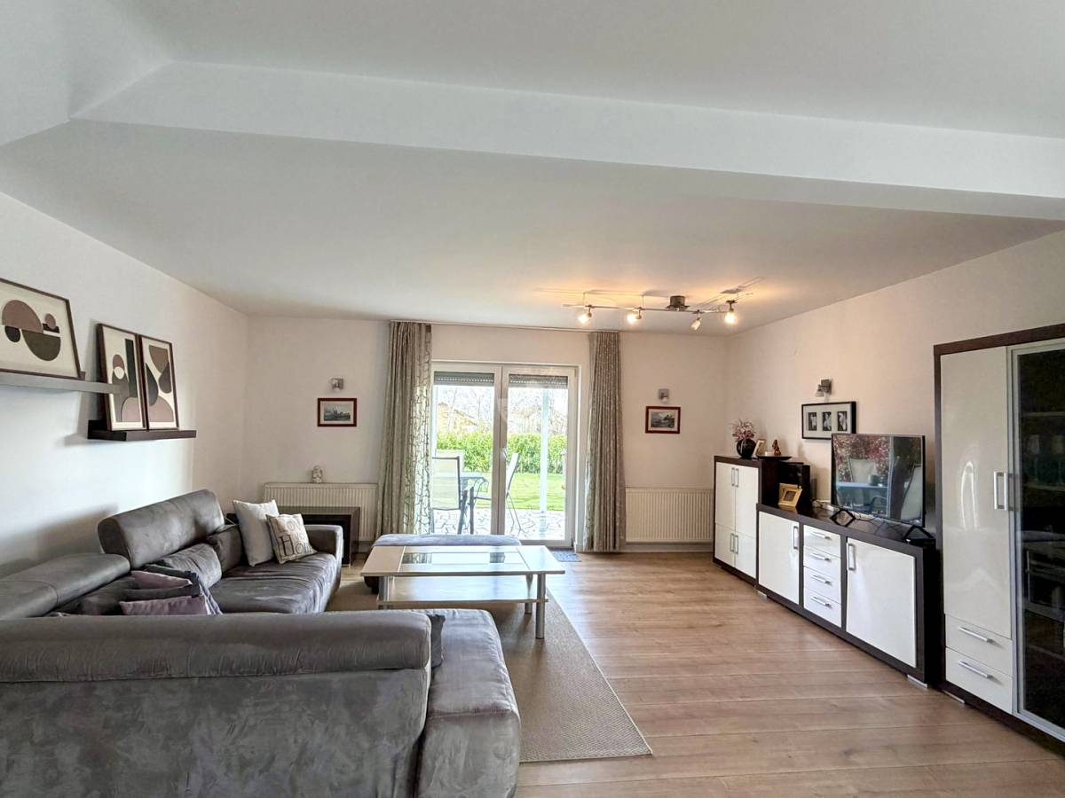 Velike staklene površine osiguravaju obilje prirodnog svjetla i stvaraju ugodan ambijent tijekom cijelog dana. Kvaliteta gradnje i održavanje kuće vidljivi su na svakom koraku. Dodatna pogodnost je dimnjak, koji omogućuje ugradnju kamina u dnevnom boravku za još topliji i ugodniji ugođaj.
