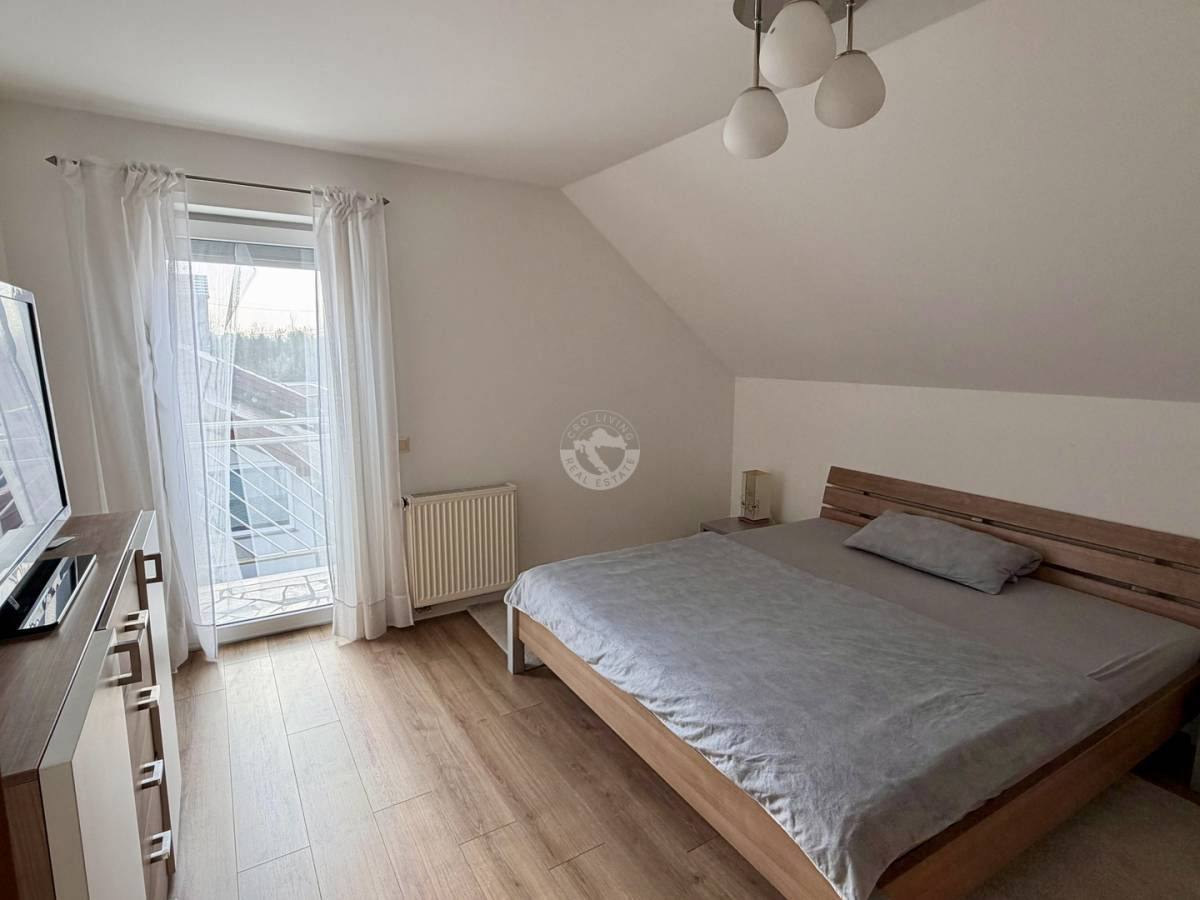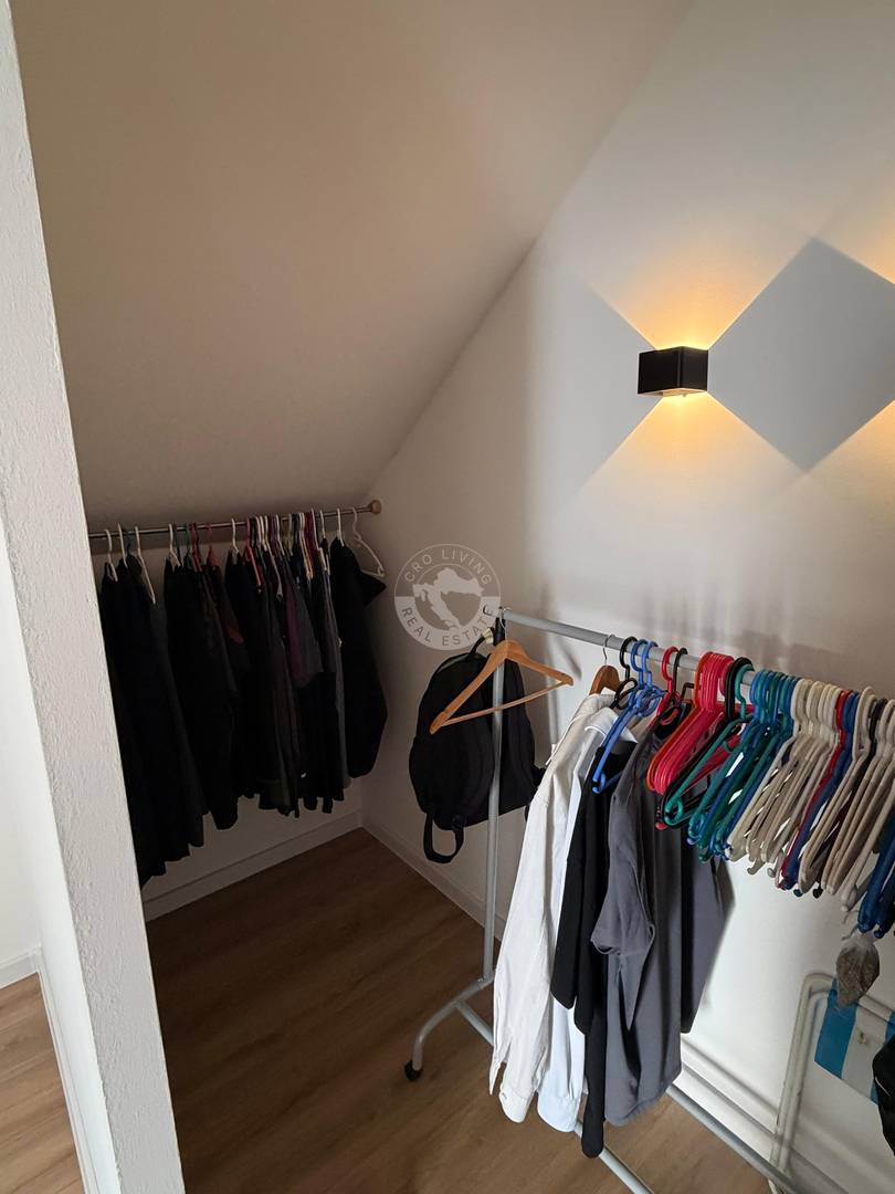 Posebna prednost je što svaka spavaća soba ima vlastiti walk-in ormar, što značajno doprinosi organizaciji i komforu. Dvije sobe imaju i izlaz na balkon.