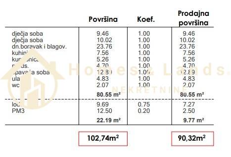 Stan S2 zgrade 1 na 1 katu kupne korisne površine 102,74m2 (obračunske površine 90,32m2) sastoji se od ulaznog hodnika,kuhinje s blagovaonicom,velikog dnevnog boravka,tri spavaće sobe,kupaonice,wc-a,loggie i parkinga.