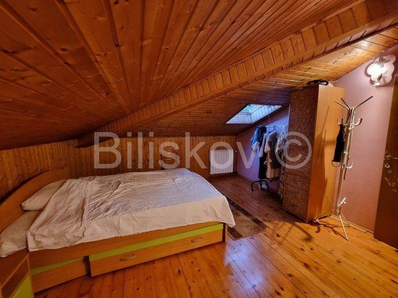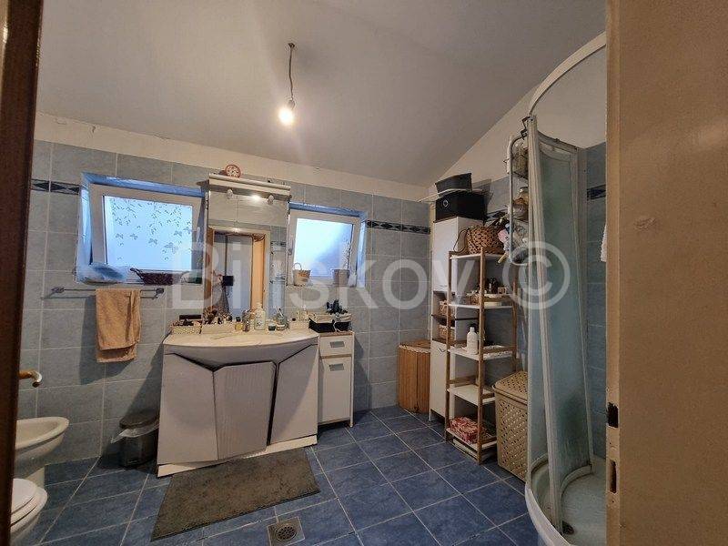 Na gornjoj etaži nalaze se dvije sobe i kupaonica. Gornja etaža je tlocrtno ista, ali manja površina radi kosina krova.