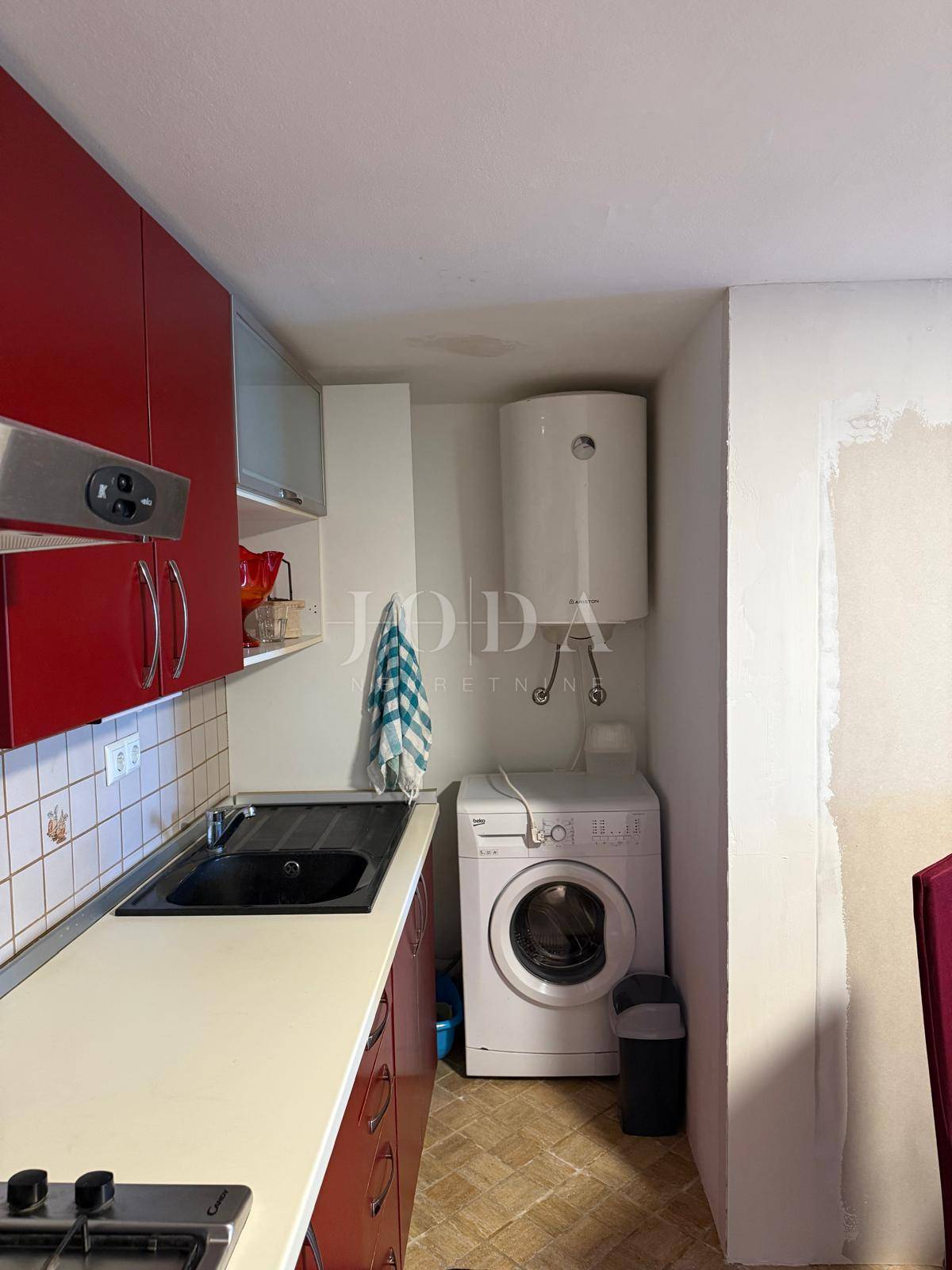 Kuća u nizu koja se sastoji od veće ulazne terase na kojoj je šterna. Sama kuća sastoji se od ulaznog hodnika, kuhinje, blagovaone, dnevnog boravka, unutarnjeg stepeništa za kat gdje su dvije spavaće sobe s balkonom. U sklopu dvorišta je prizemni objekat pod pločom, koji je u roh-bau, koji se sastoji od dvije sobe, dnevnog boravka, kuhinje i kupatila.