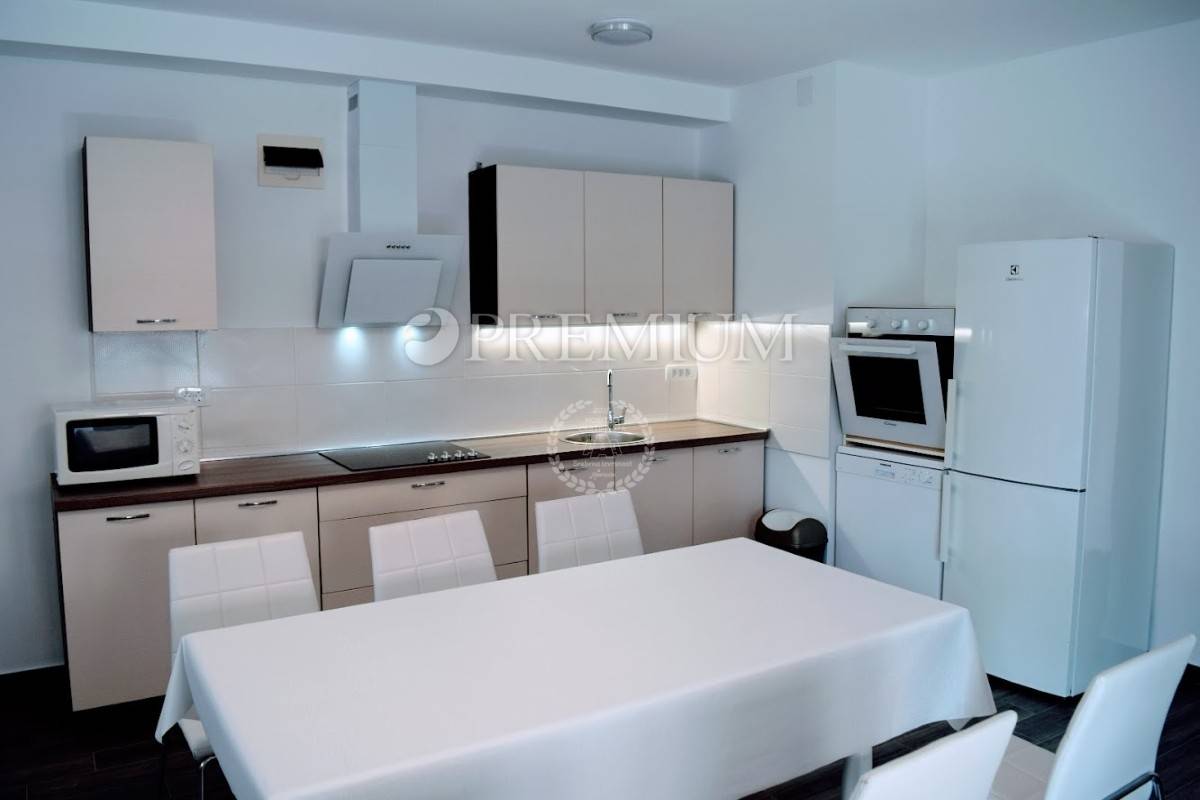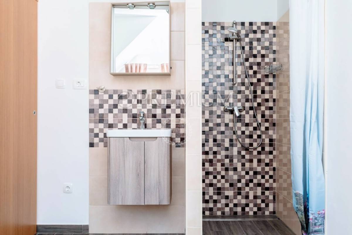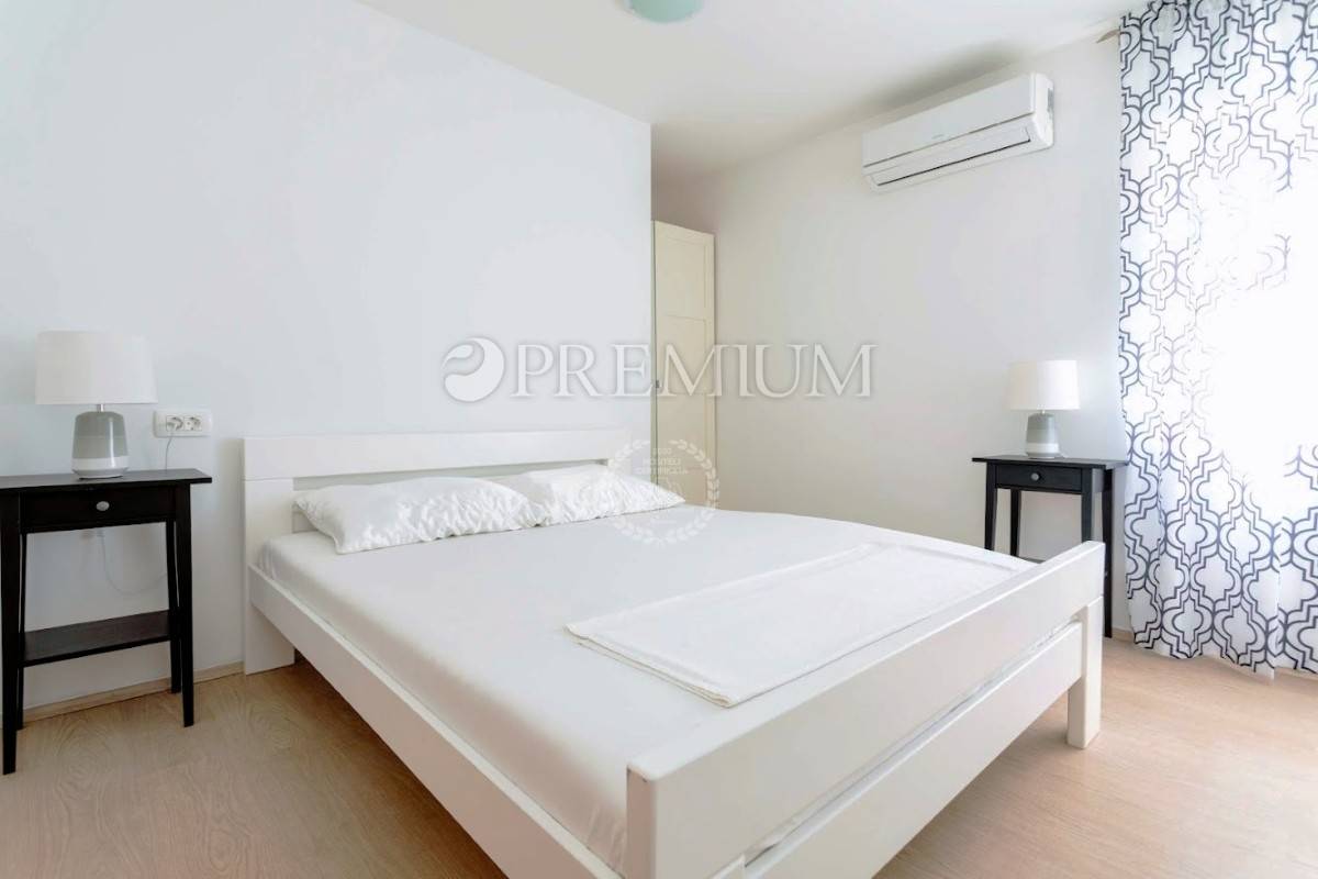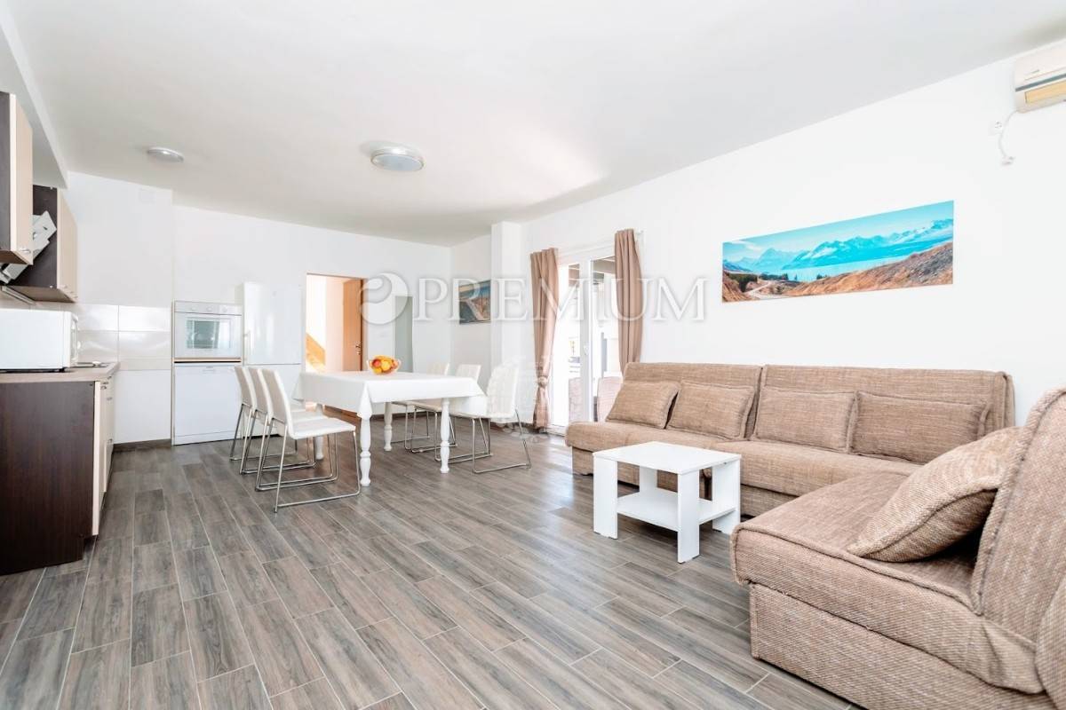 Prizemlje se sastoji od open-space kuhinje s blagovaonom, prostranog dnevnog boravka, gostinjskog toaleta, jedne spavaće sobe i kupaonice. Unutarnje stepenište vodi na kat koji čine dvije komotne spavaće sobe, velika kupaonica te manja kuhinja s izlazom na terasu s koje se pruža prekrasan pogled na more.