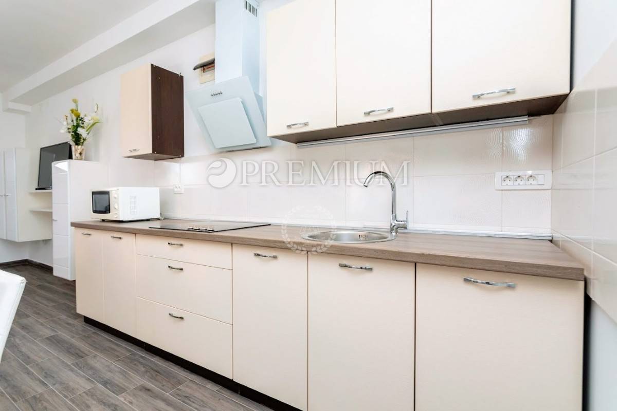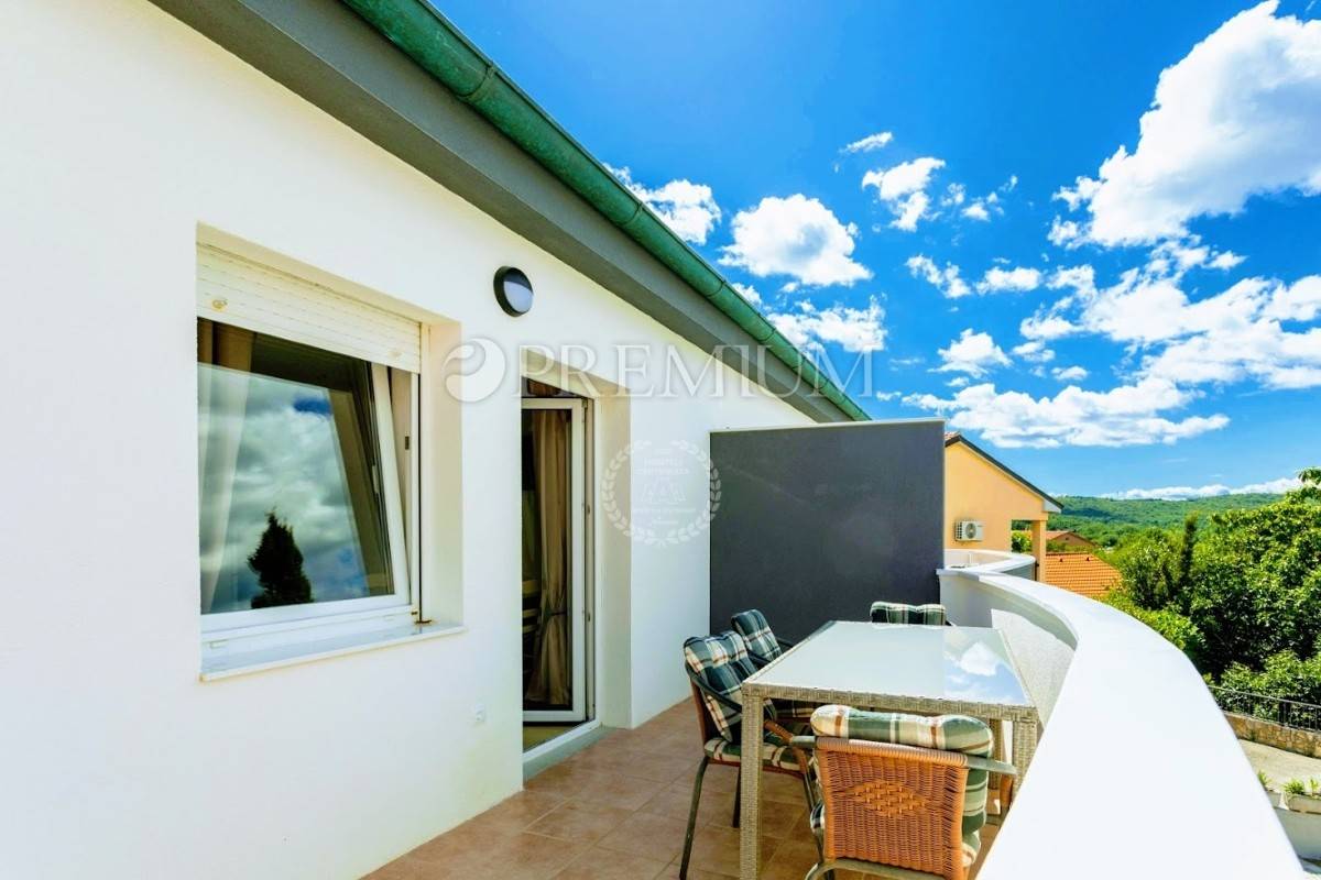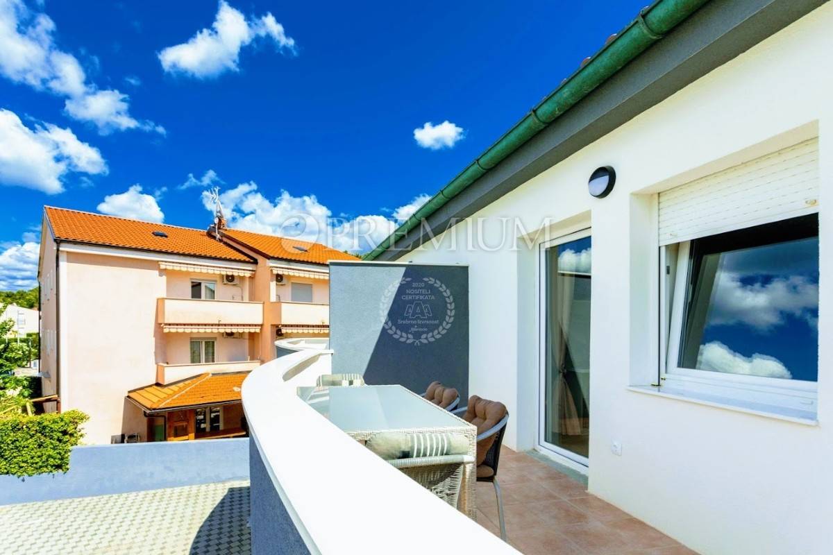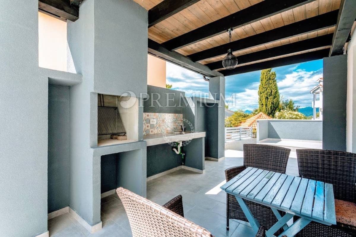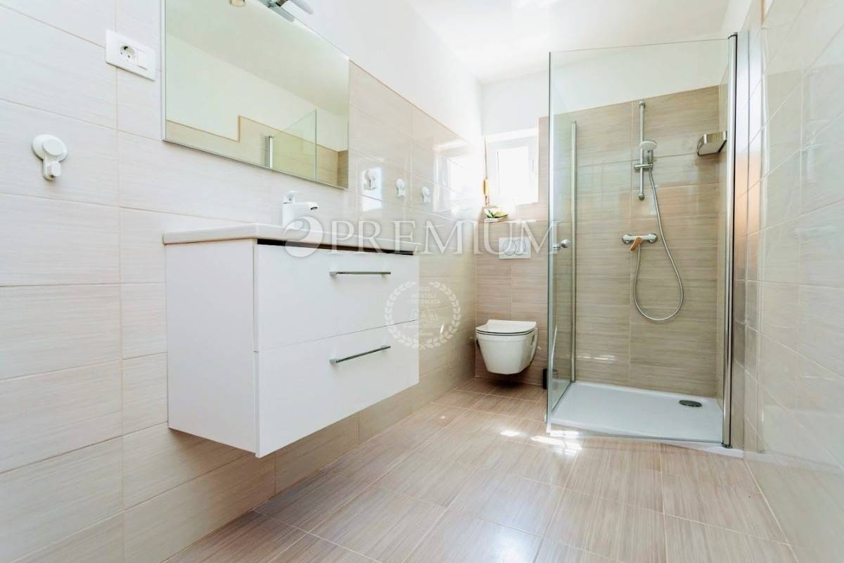 Prizemlje se sastoji od open-space kuhinje s blagovaonom, prostranog dnevnog boravka, gostinjskog toaleta, jedne spavaće sobe i kupaonice. Unutarnje stepenište vodi na kat koji čine dvije komotne spavaće sobe, velika kupaonica te manja kuhinja s izlazom na terasu s koje se pruža prekrasan pogled na more.