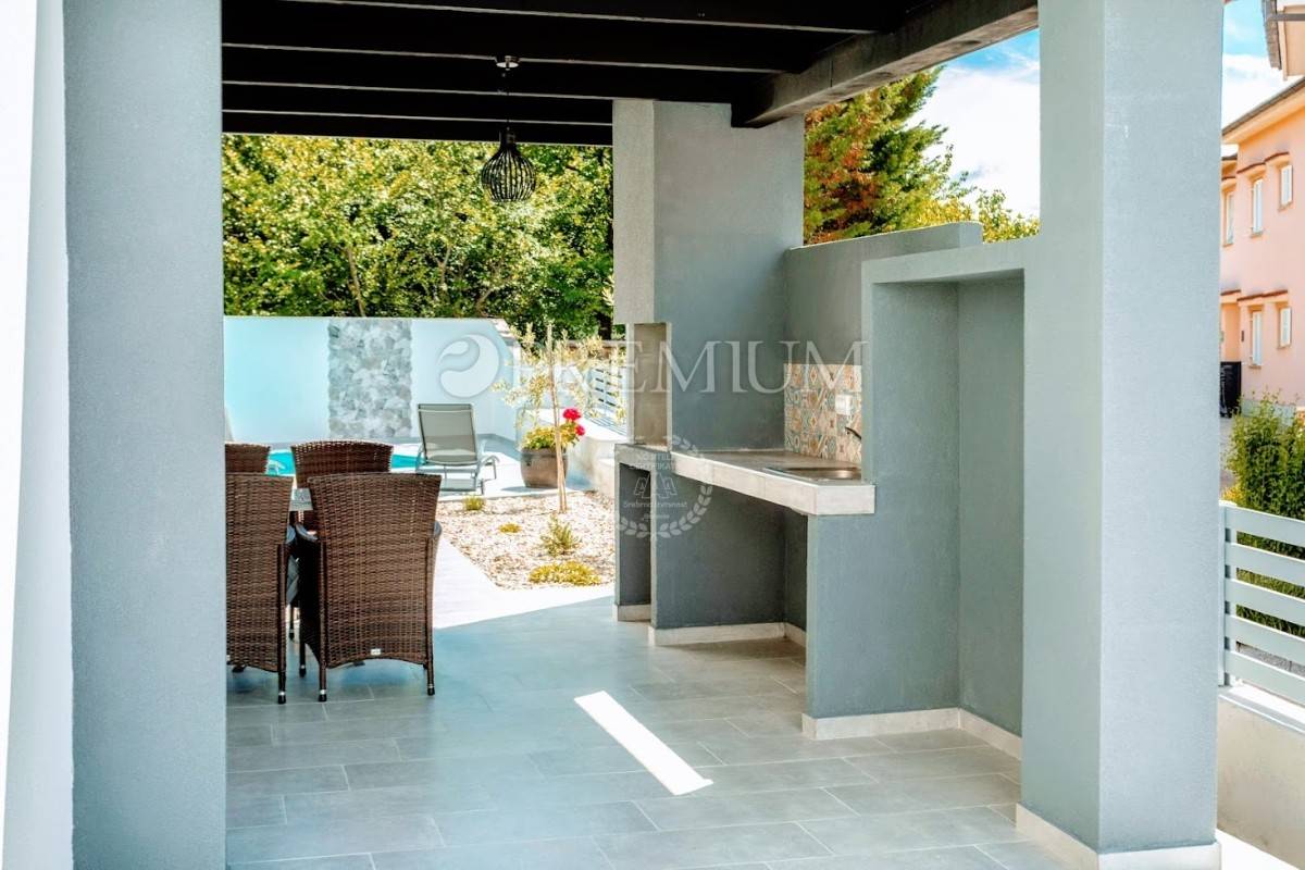 Na okućnici se nalazi bazen sa sunčalištem, idealan za ljetno uživanje, te ljetna kuhinja koja pruža dodatnu vrijednost i prostor za druženje. Osigurana su i dva parkirna mjesta.
