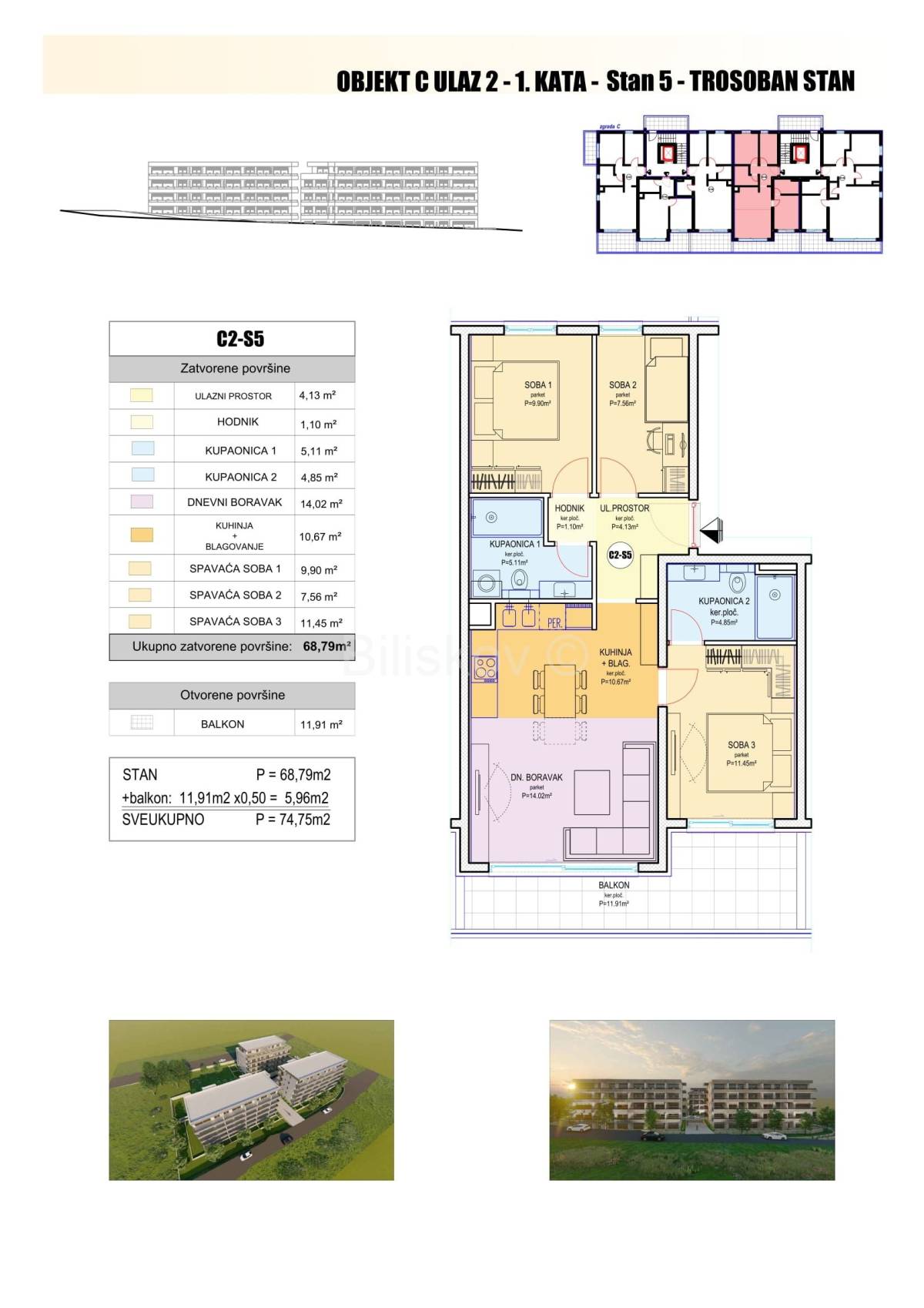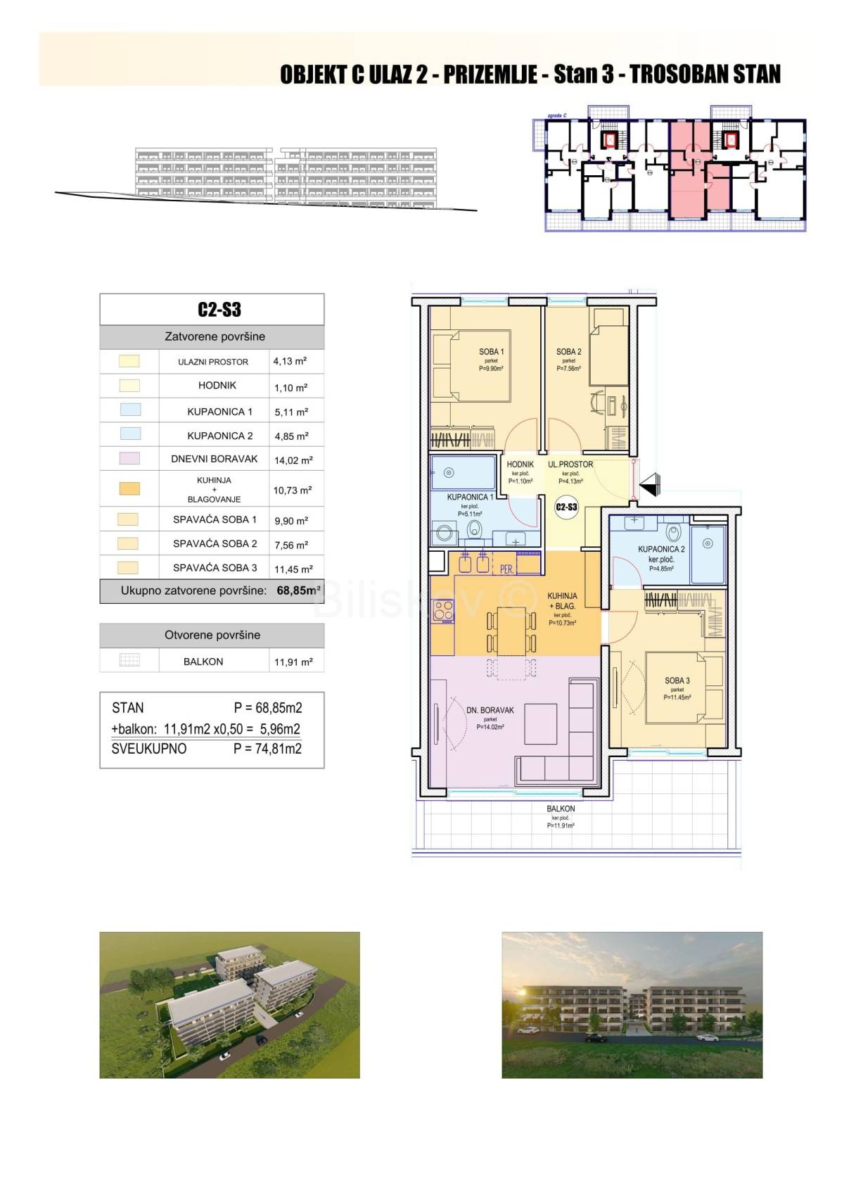 C2-S1 3-sobni jug-sjever 78,94 4.800,00 378.912,00 €