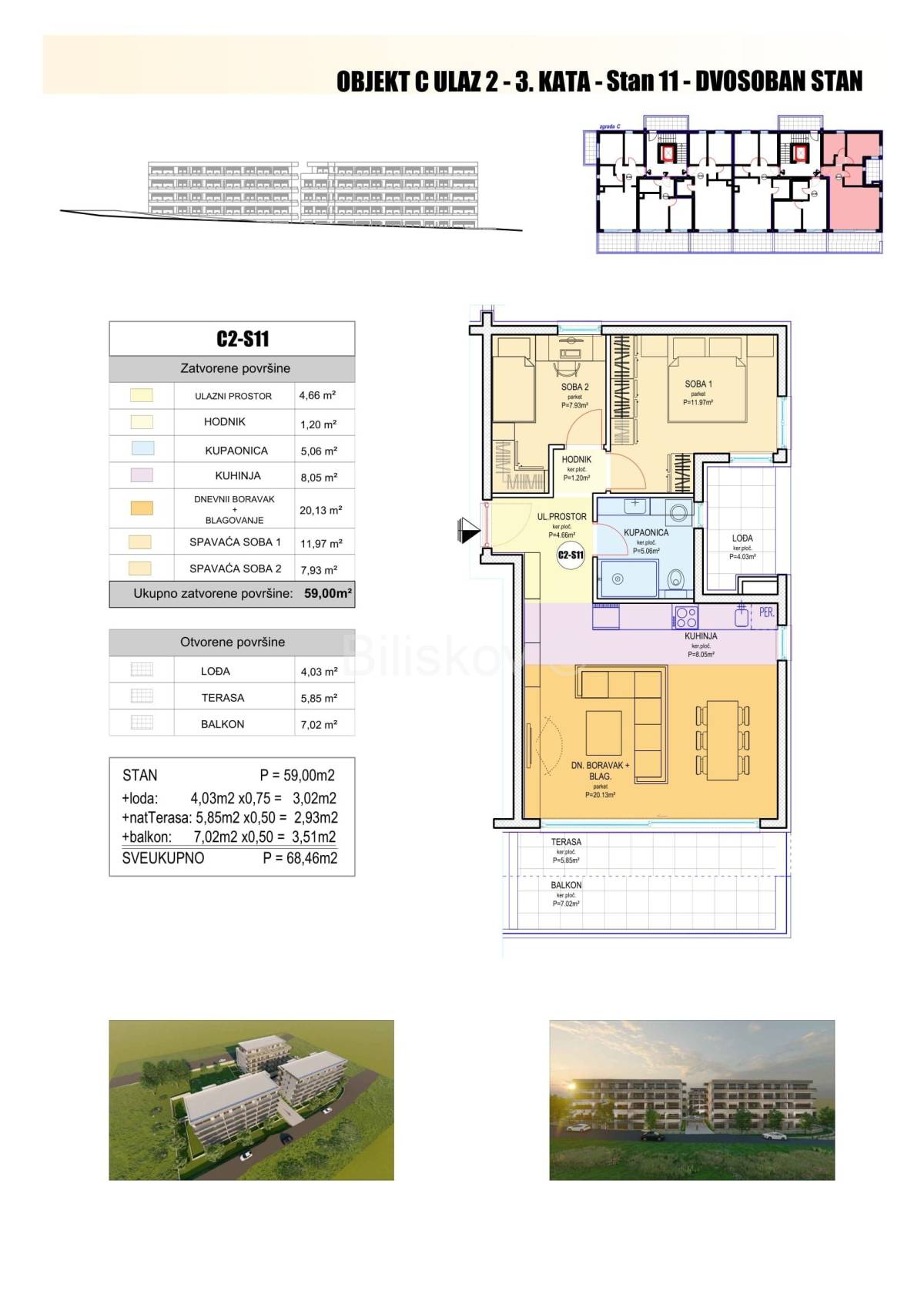 C2-S11 2-sobni jug-istok-sjever 68,46 6.500,00 444.990,00 €