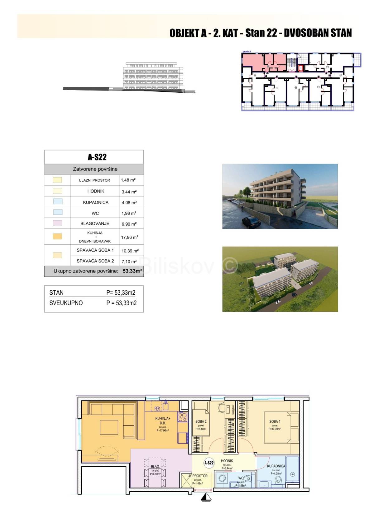 A-S22 2-sobni sjeverozapad 53,33 4.900,00 261.317,00€