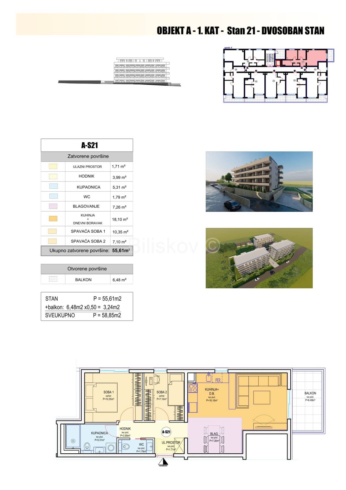 A-S6 2-sobni jug-istok 62,57 4.500,00 281.565,00€