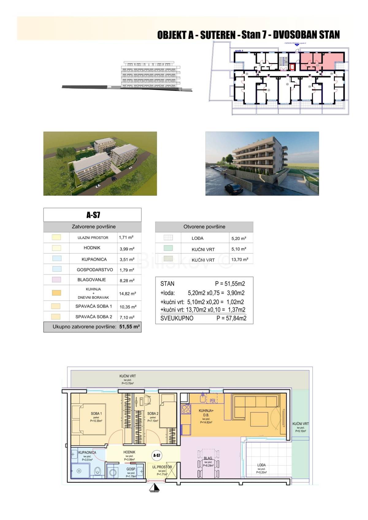 A-S7 2-sobni sjever-istok 57,84 4.500,00 260.280,00€