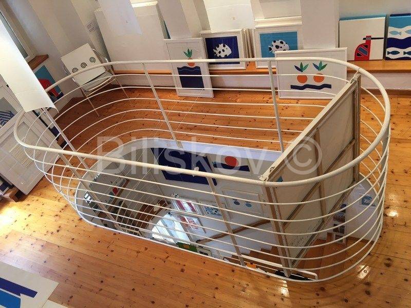 U prizemlju se nalaze stepenice koje vode na etažu 1. kata. Unutarnje stepenice vode na drugu etažu te na etažu potkrovlja.