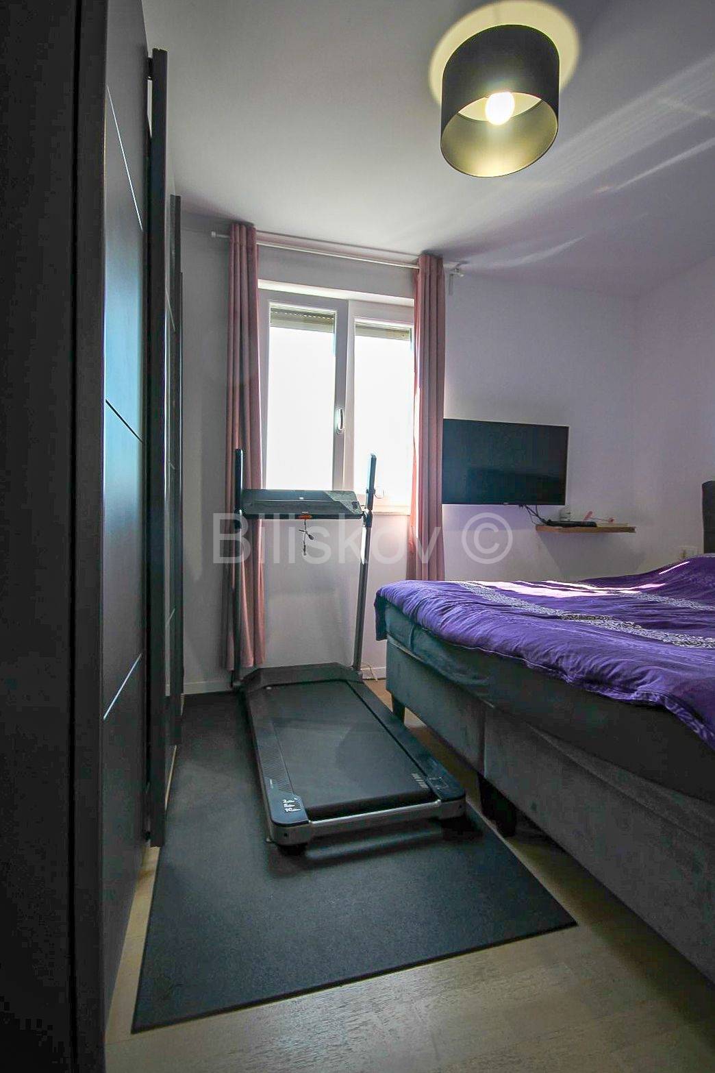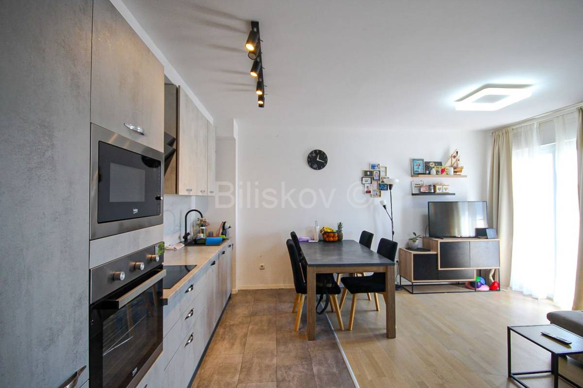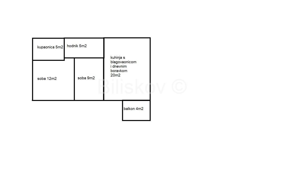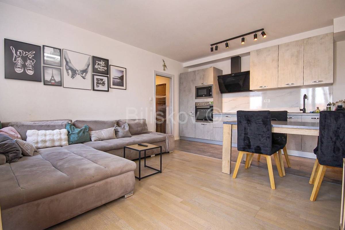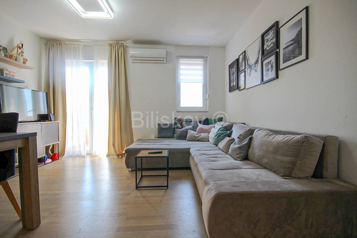 Stan se sastoji od kuhinje s blagovaonicom i dnevnim boravkom površine 20m2, dvije spavaće sobe, kupaonice, hodnika i lođe. Raspored stana je odličan i doima se većim od 50 m2, a tome doprinosi i visina stropa od 3m.