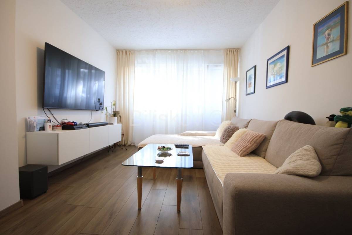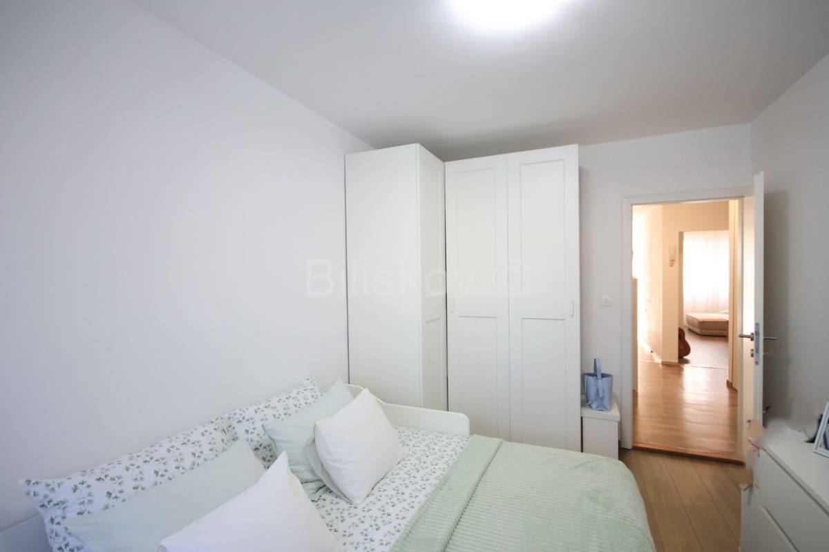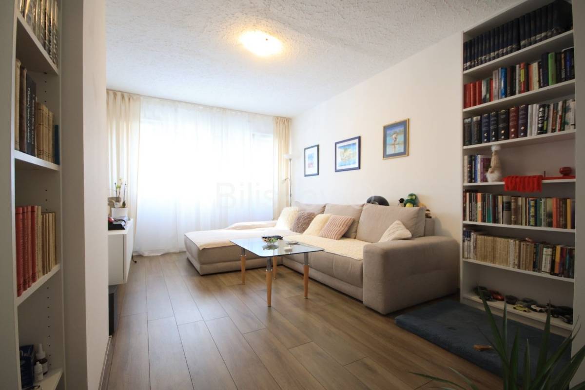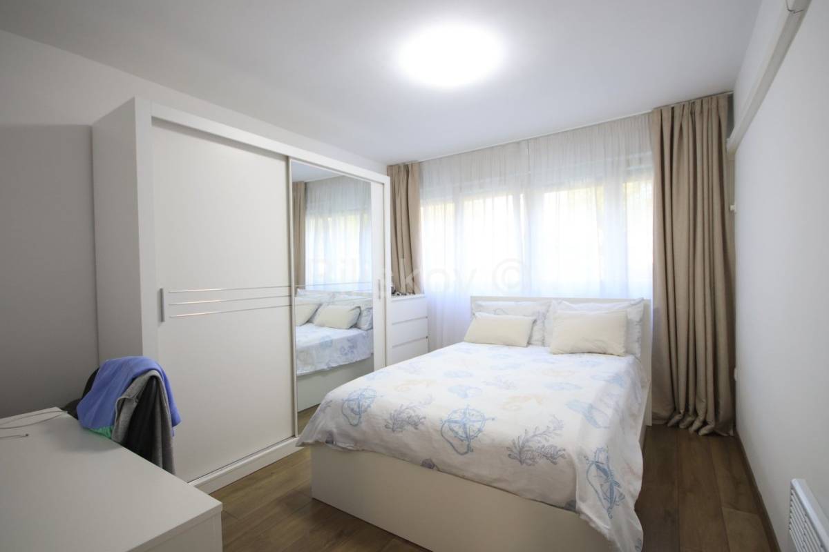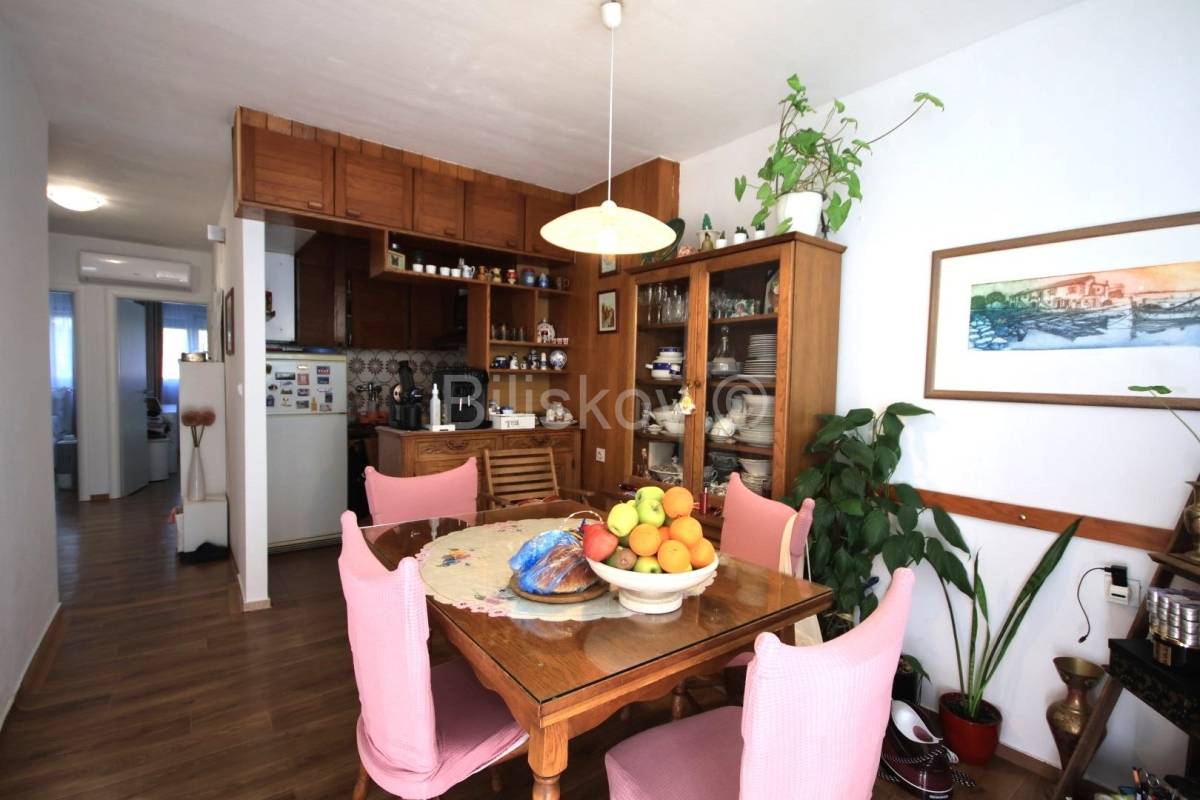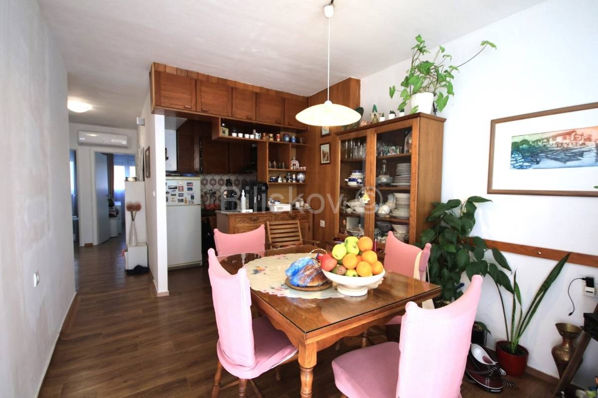 Stan je većim dijelom renoviran. Sobe, kupaonica i hodnik su kompletno renovirani: PVC prozori, nova vrata, promijenjene sve instalacije, automatski osigurači, novi podovi. Do kuhinje je isto dovedena nova instalacija vode i struje.