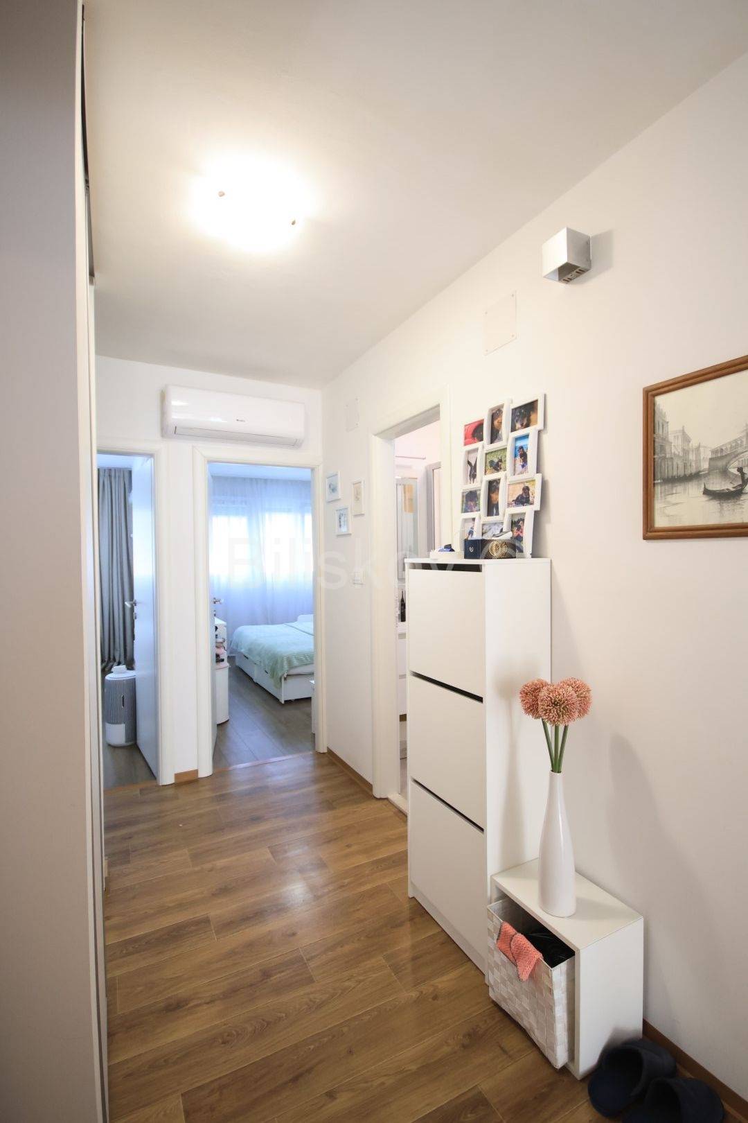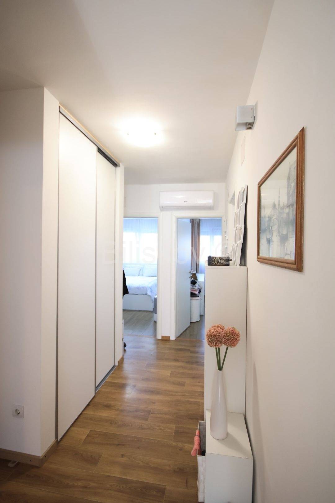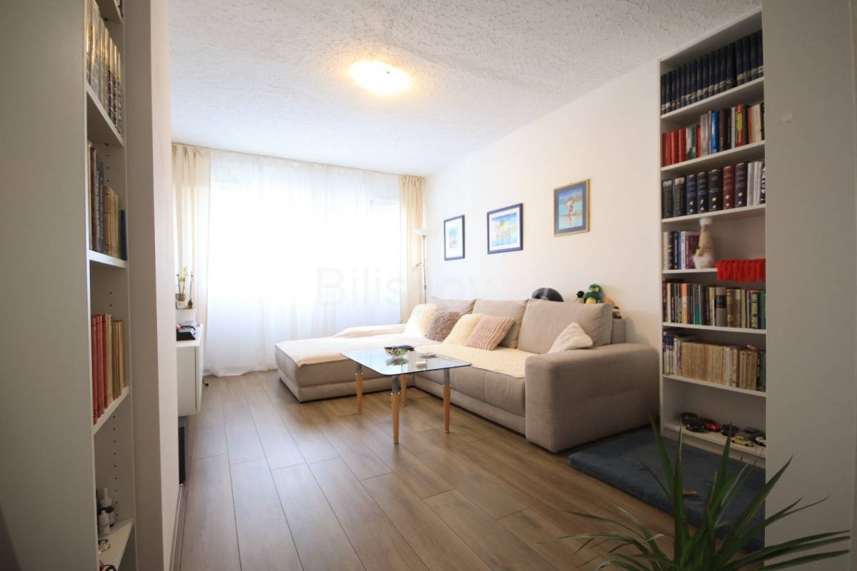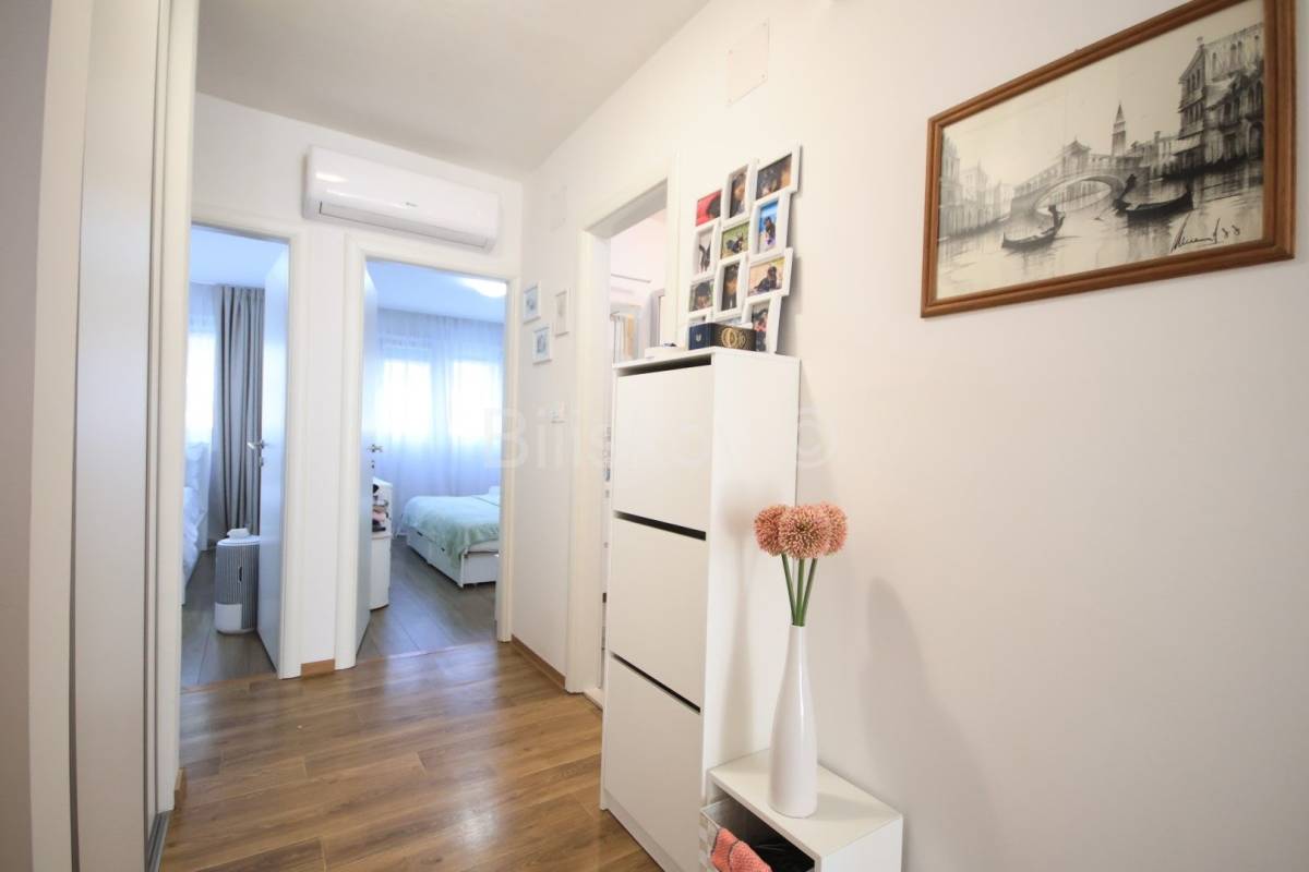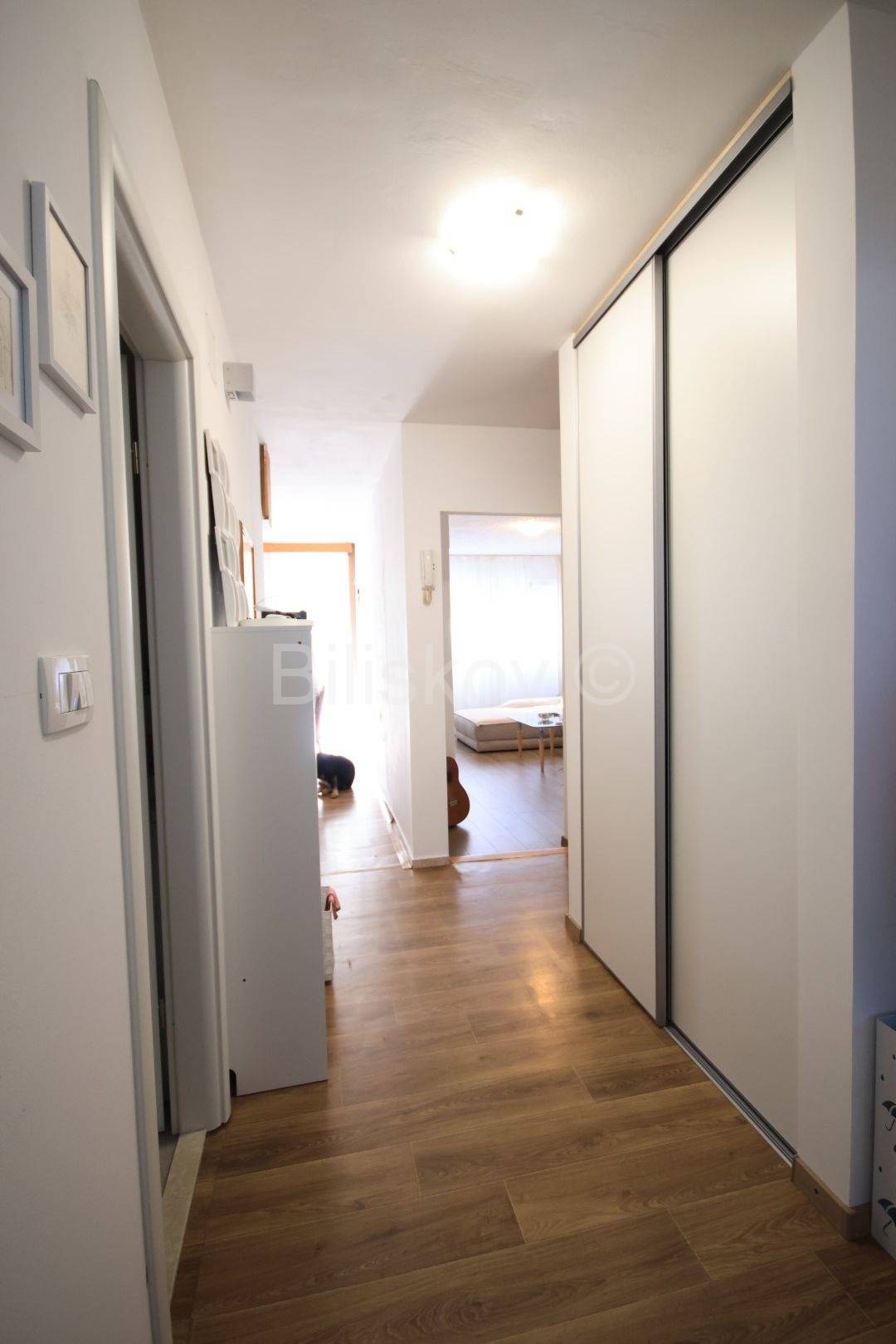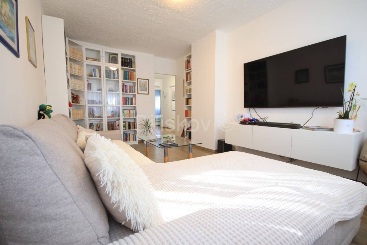 Stan je većim dijelom renoviran. Sobe, kupaonica i hodnik su kompletno renovirani: PVC prozori, nova vrata, promijenjene sve instalacije, automatski osigurači, novi podovi. Do kuhinje je isto dovedena nova instalacija vode i struje.
