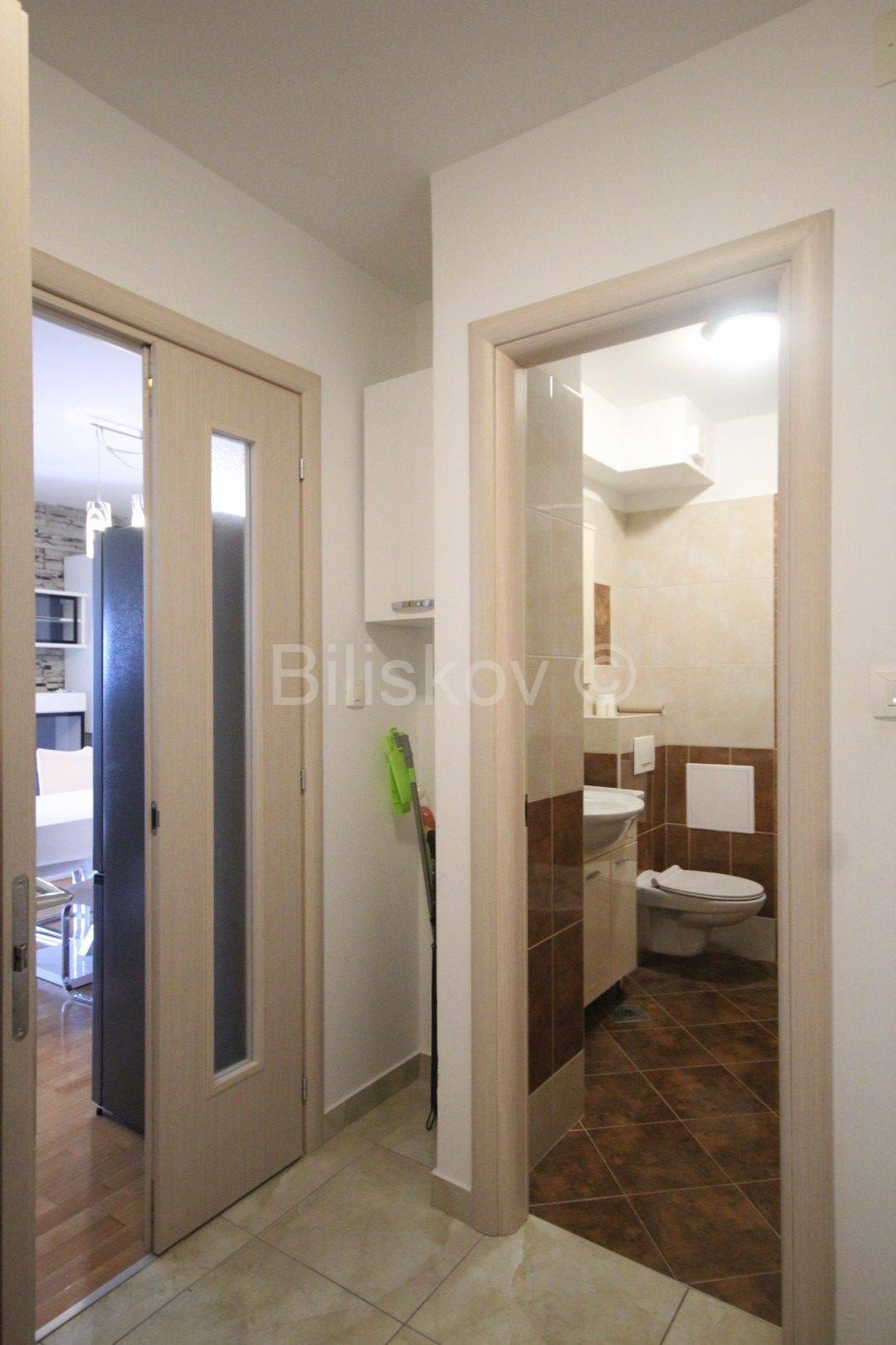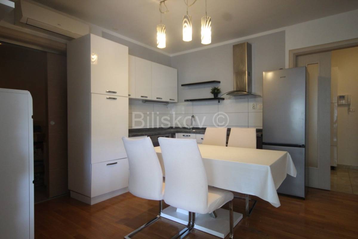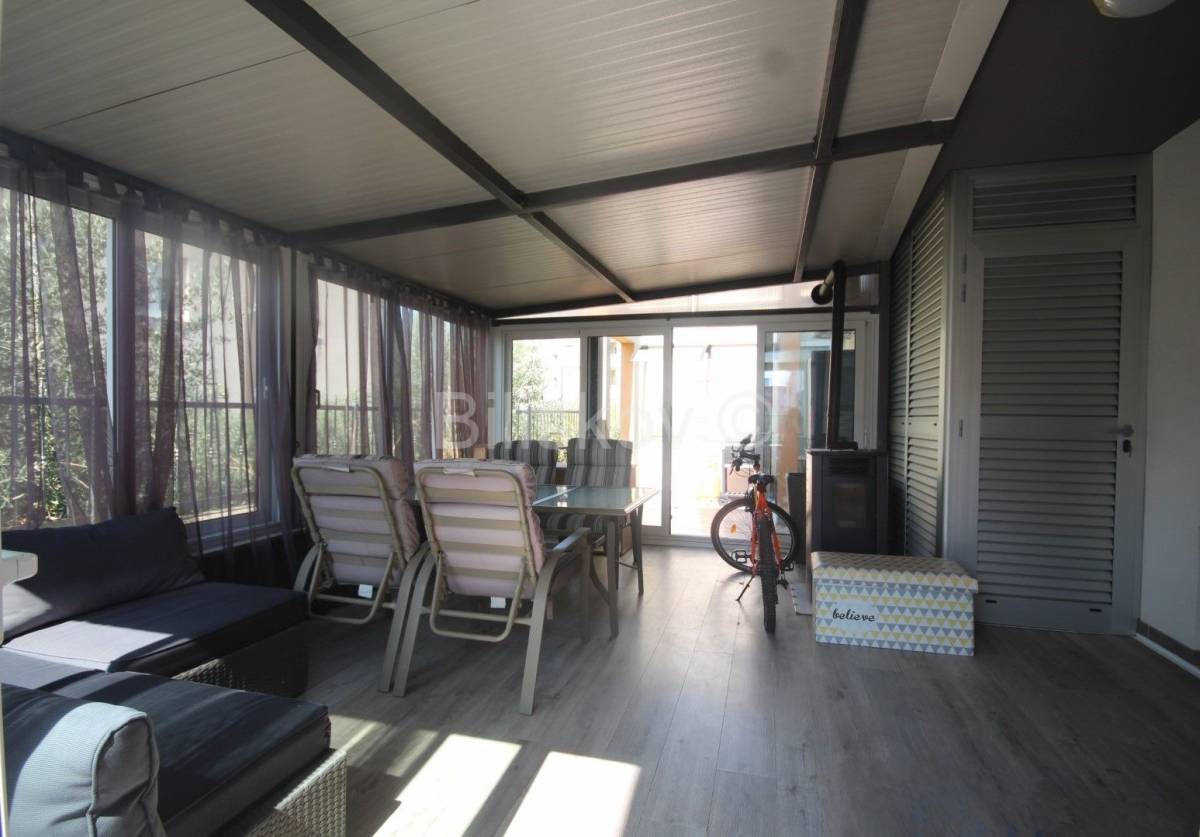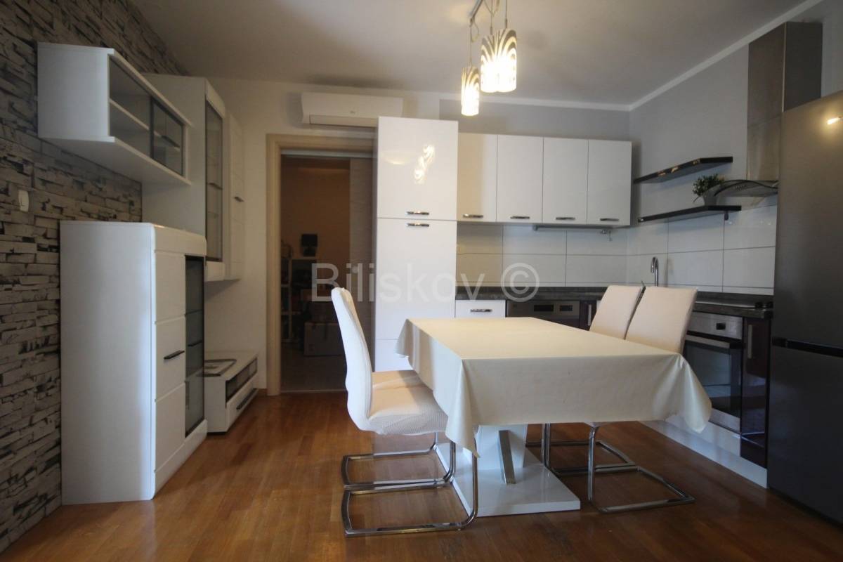 Raspored stana je odličan. U ulaznom hodniku je ugradbeni ormar i kupaonica. Dnevni boravak i kuhinja su središnji prostor strana i iz njega se izlazi na ostakljenu verandu površine 22m2 koja se koristi kao drugi dnevni boravak. S obje strane verande su terase: južna površine 20m2 na kojoj je dodatna garnitura za sjedenje, a na sjevernoj se nalazi roštilj. Iz dnevnog prostora se ulazi u spavaće sobe: jedna na zapadu, i dvije na jugu između kojih je druga kupaonica. Zapadna soba ima i zatvorenu lođu koja se može korisitit kao radna soba.