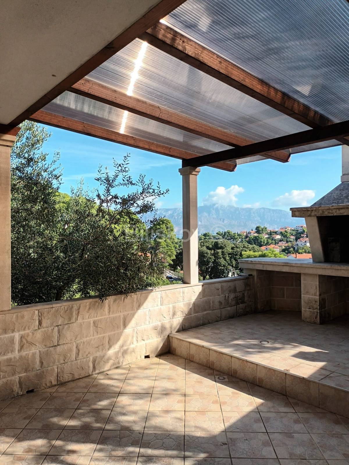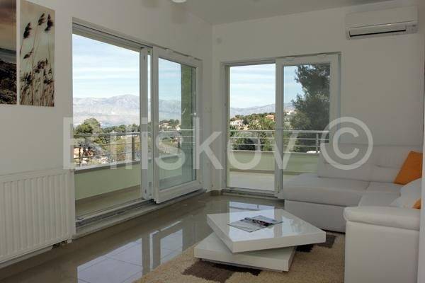 Vanjske stepenice vode na kat na kojem se nalaze 3 sobe svaka s vlastitom kupaonicom i velika terasa cca 25m2 s koje se pruža pogled na more.