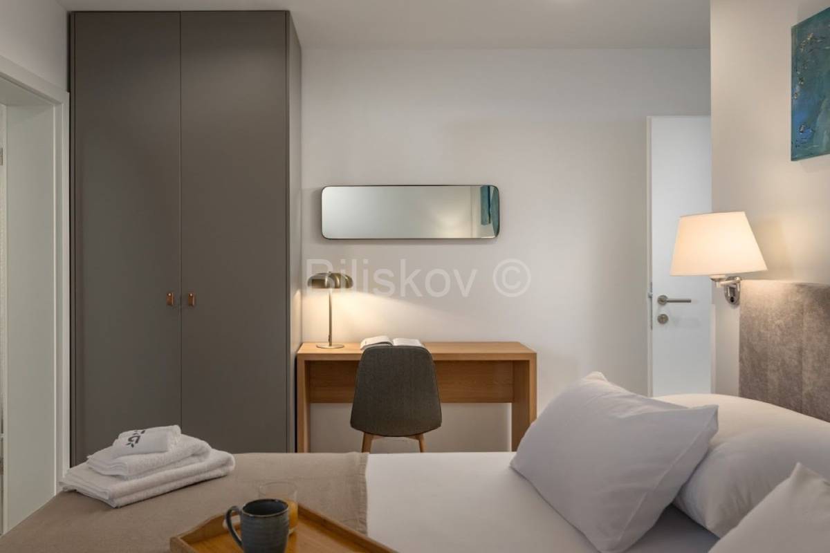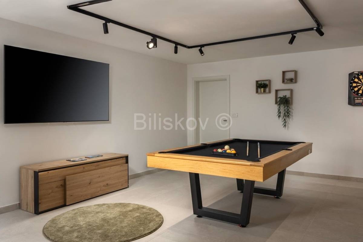 Od sadržaja na velikoj terasi u prizemlju se nalazi bazen, roštilj, vanjski blagovaonski stol i zona za opuštanje.