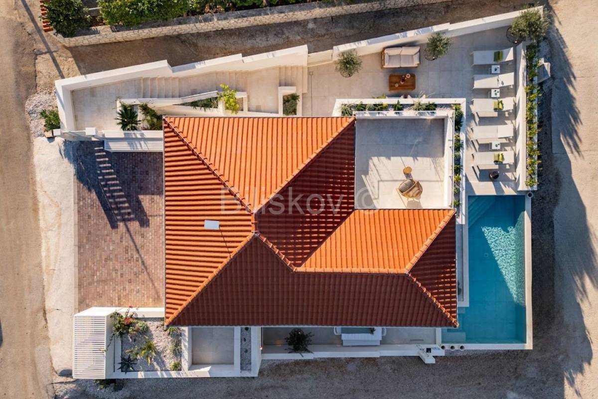 Brač, Splitska, prekrasna vila od 150 m2 stambenog prostora s bazenom na parceli od 366 m2.