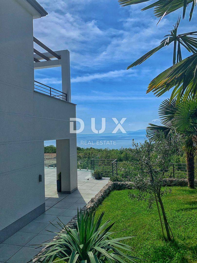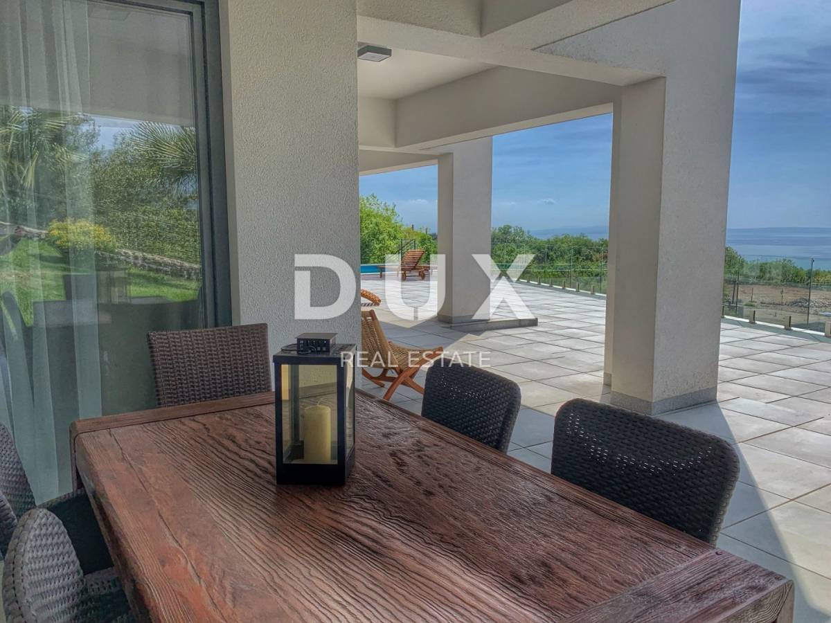 Villa / kuća je južno orijentirana s velikim staklenim stijenama na svim prostorijama na južnoj strani, tako da se iz tih prostorija pruža panoramski pogled na cijeli Kvarnerski zaljev.