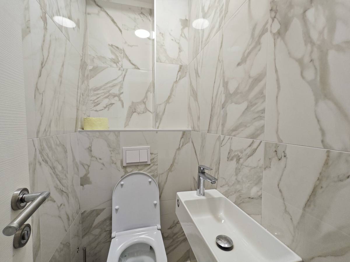 Stan se sastoji od ulaznog hodnika, tri spavaće sobe, moderno uređene kupaonice, posebnog WC-a te prostranog dnevnog boravka s kuhinjom i blagovaonicom u otvorenom konceptu. Velika lođa s nesmetanim pogledom na more postaje prirodno produženje dnevnog prostora – savršeno mjesto za jutarnju kavu ili opuštanje u zalasku sunca.