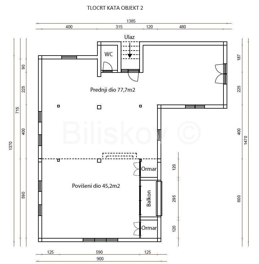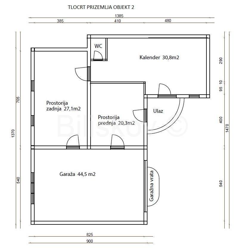 Drugi objekt također je kuća s prizemljem i katom. Na katu se nalazi jedna velika open-space prostorija, balkon i WC, dok se u prizemlju nalaze četiri prostorije koje se trenutno koriste kao logistički prostori, ali se manjim preinakama mogu prenamijeniti.