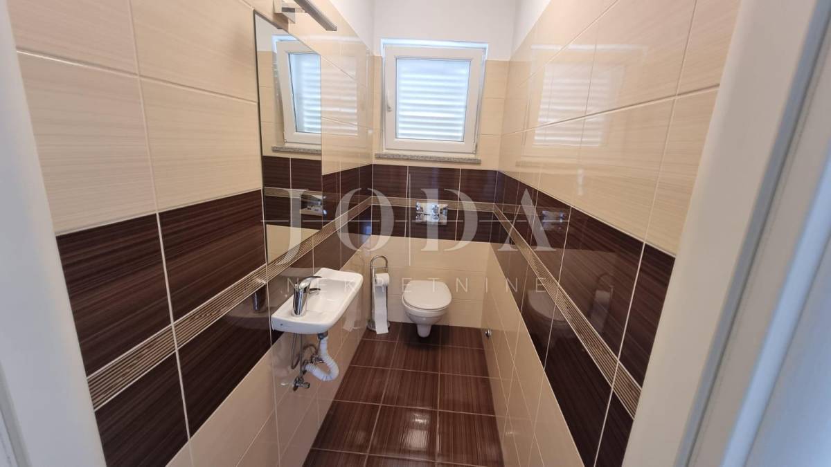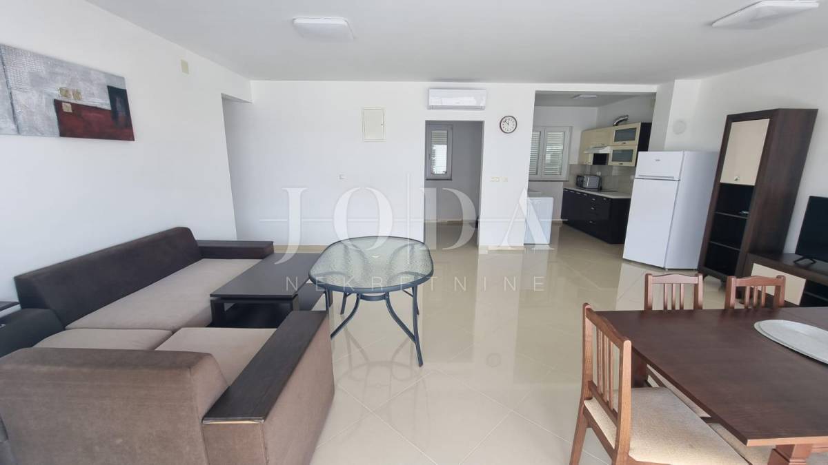 Svaka etaža je jedan stan ,koji se sastoji od dvije spavaće sobe,kupaonice,wc-a,otvorenog koncepta dnevnog boravka i kuhinje te iznimno velikog balkona.