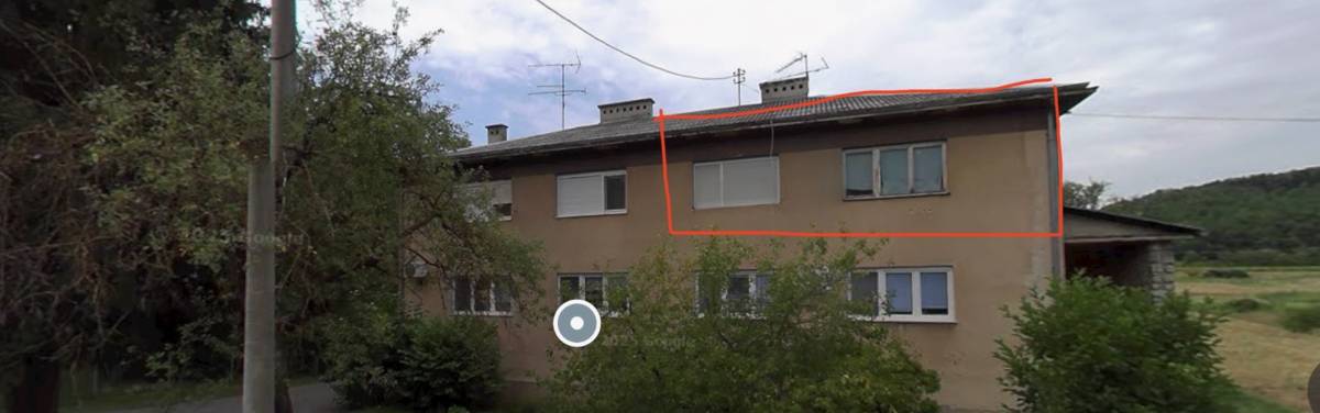 U nekadašnjoj zgradi za učitelje, zgrada sa četiri stana. Dva useljena, žive umirovljeni učitelji, treći i naš prazni. Stan 50m2 te garsonijera od 19m2 (jedno pored drugog) na prvom katu, nekada bilo povezano u jedan stan, moguće ponovno povezivanje u jedan stan. Zasebna brojila za struju, vlasništvo 1/1, podrumska prostorija (šupa), vanjski parking, OŠ 1-8 razred 50 metara, stanica ZET 100 metara (3 linije, svakih 20 minuta), Vrtić Kašina 6,4km, dvije trgovine 150 i 300 metara, caffe bar 300 metara, ambulanta i stomatolog 500 metara, Aquapark Adamovec 650 metara. Potrebno preuređenje. Cijena dogovor.