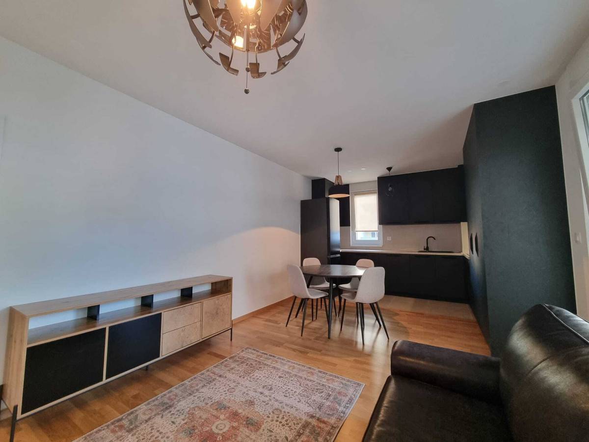 Stan ima 60 m2, balkon od 17 m2, orijentiran na jug i istok, a sastoji se od ulaza, open space prostora sa kuhinjom, blagovaonom i velikim dnevnim boravkom, spavaće sobe (veliki ormar, krevet 180x200) kupaonice i prostranog balkona.