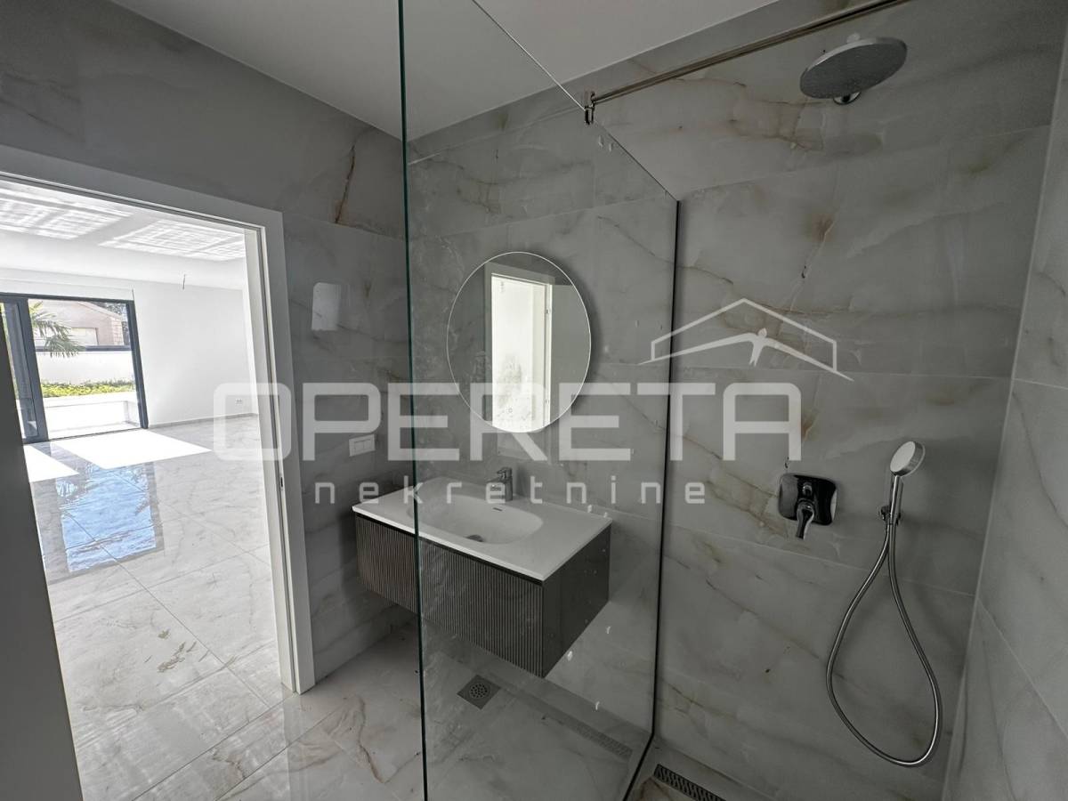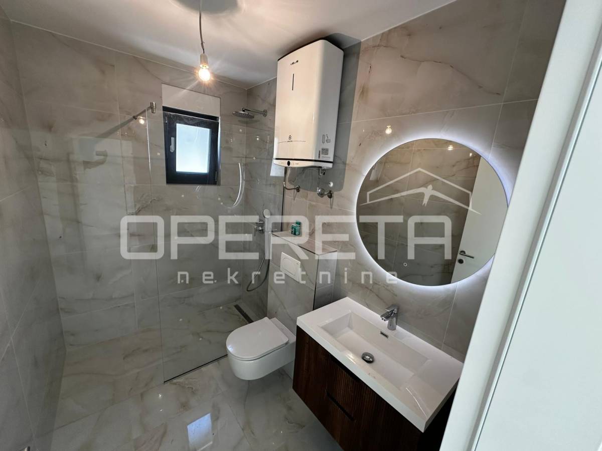 U Okrugu Gornjem nudi se luksuzan stan u novogradnji S1 površine 89,07 m², s privatnim bazenom od 11,90 m² i prostranim vrtom od 131,90 m². Stan se nalazi na prizemlju moderne zgrade s liftom, orijentiran sjever-jug-zapad, na samo 130 m od mora i plaže, što omogućava idealnu kombinaciju privatnosti i blizine svih sadržaja.