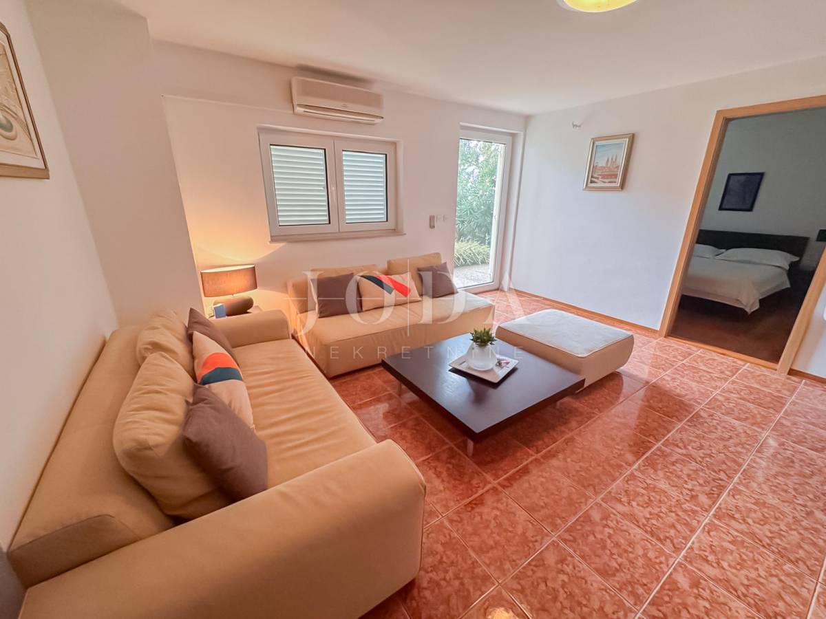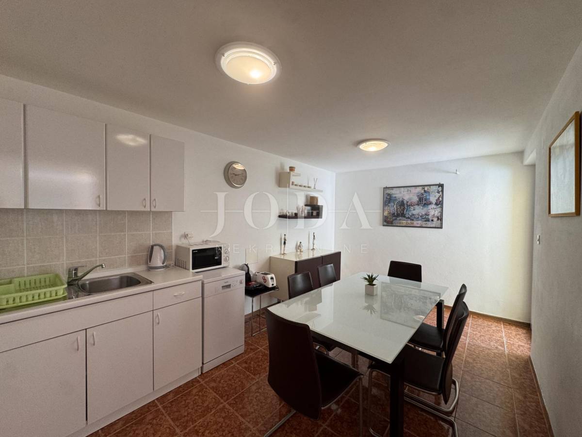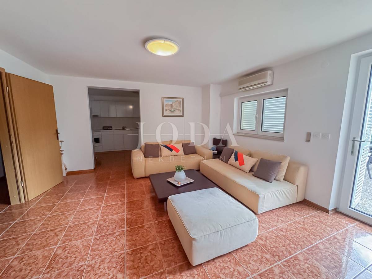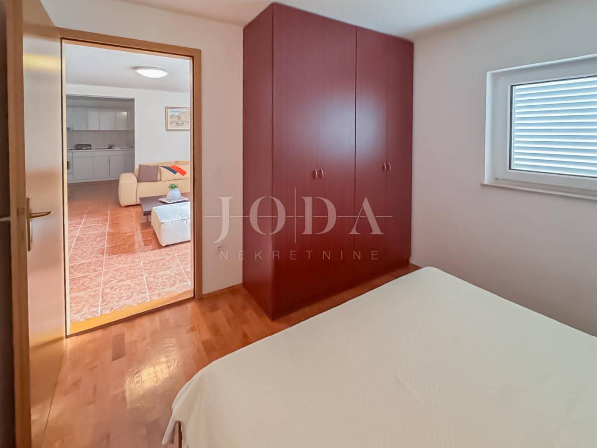 Prodaje se stan 92,70 m2 na odličnoj lokaciji svega 300 metara od mora. Stan je u potpunost opremljen i kao takav se i prodaje. Sastoji se od dnevnog boravka,blagavaone s kuhinjom, kupaone i dvije sobe sobe. U sklopu stana nalazi se još jedna dodatna soba s kupaonom i kuhinjom (koristi se kao studio apartman).