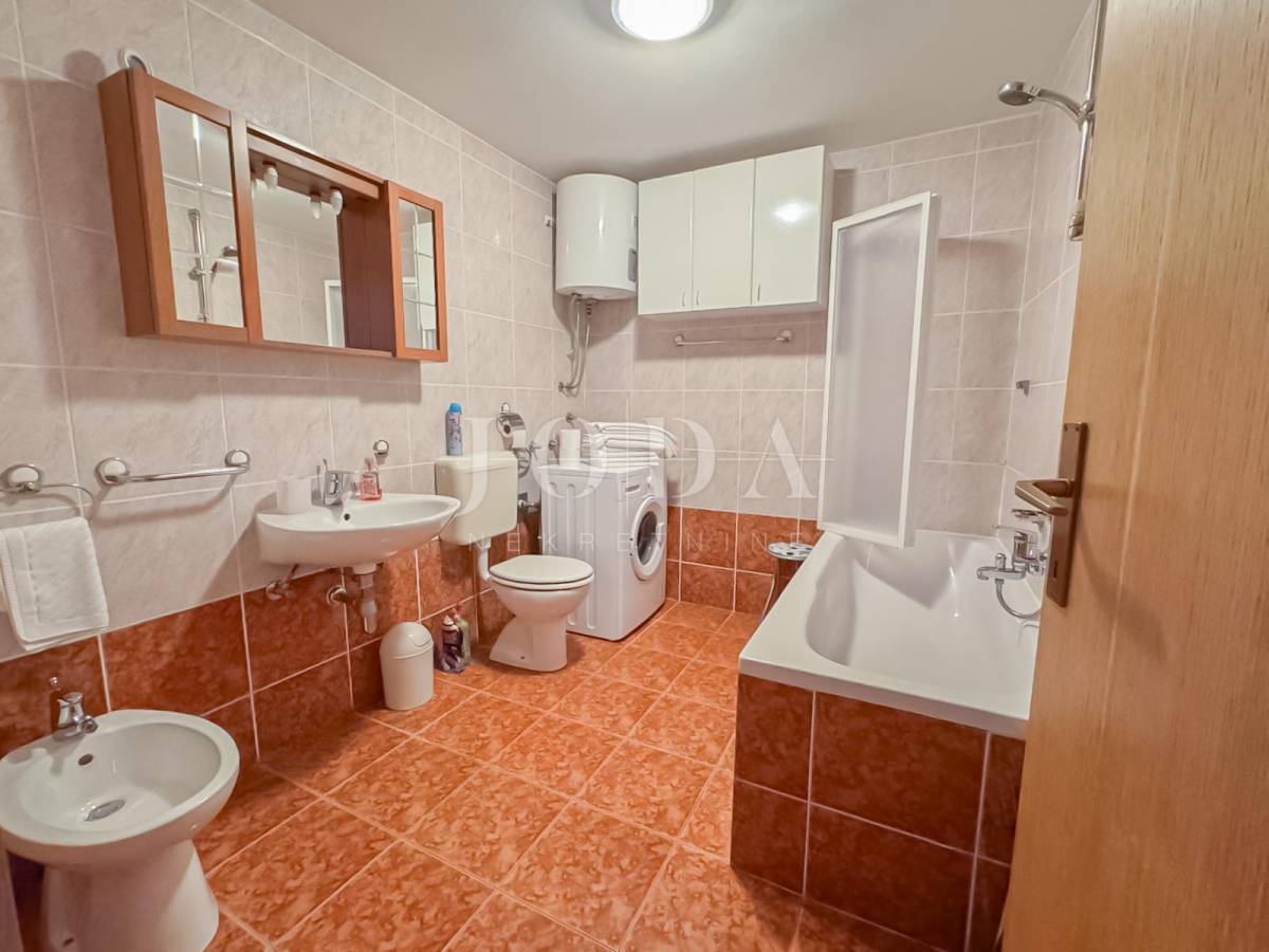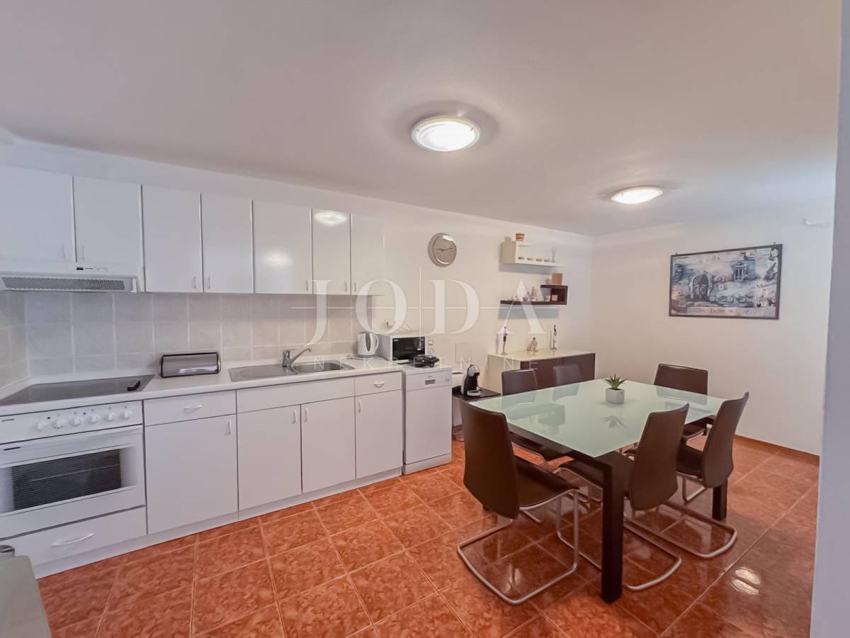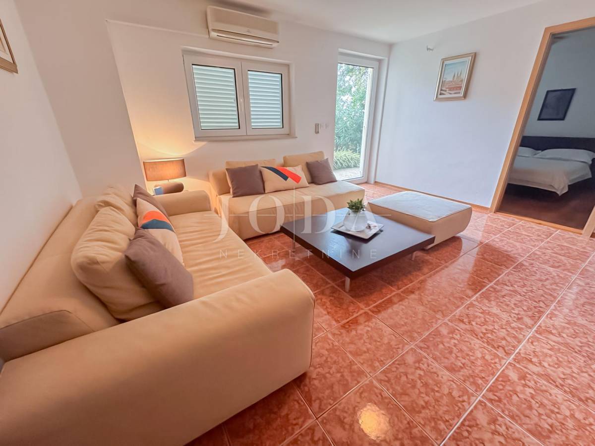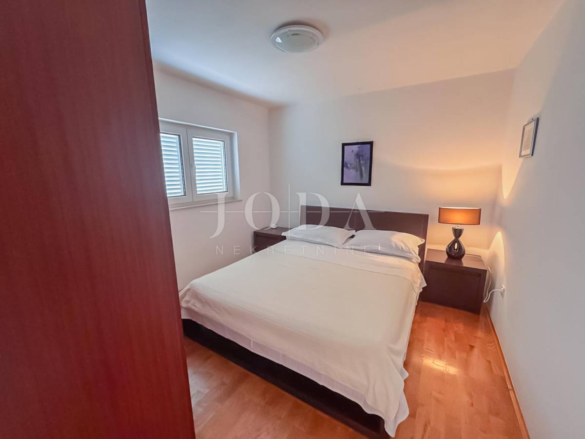 Prodaje se stan 92,70 m2 na odličnoj lokaciji svega 300 metara od mora. Stan je u potpunost opremljen i kao takav se i prodaje. Sastoji se od dnevnog boravka,blagavaone s kuhinjom, kupaone i dvije sobe sobe. U sklopu stana nalazi se još jedna dodatna soba s kupaonom i kuhinjom (koristi se kao studio apartman).