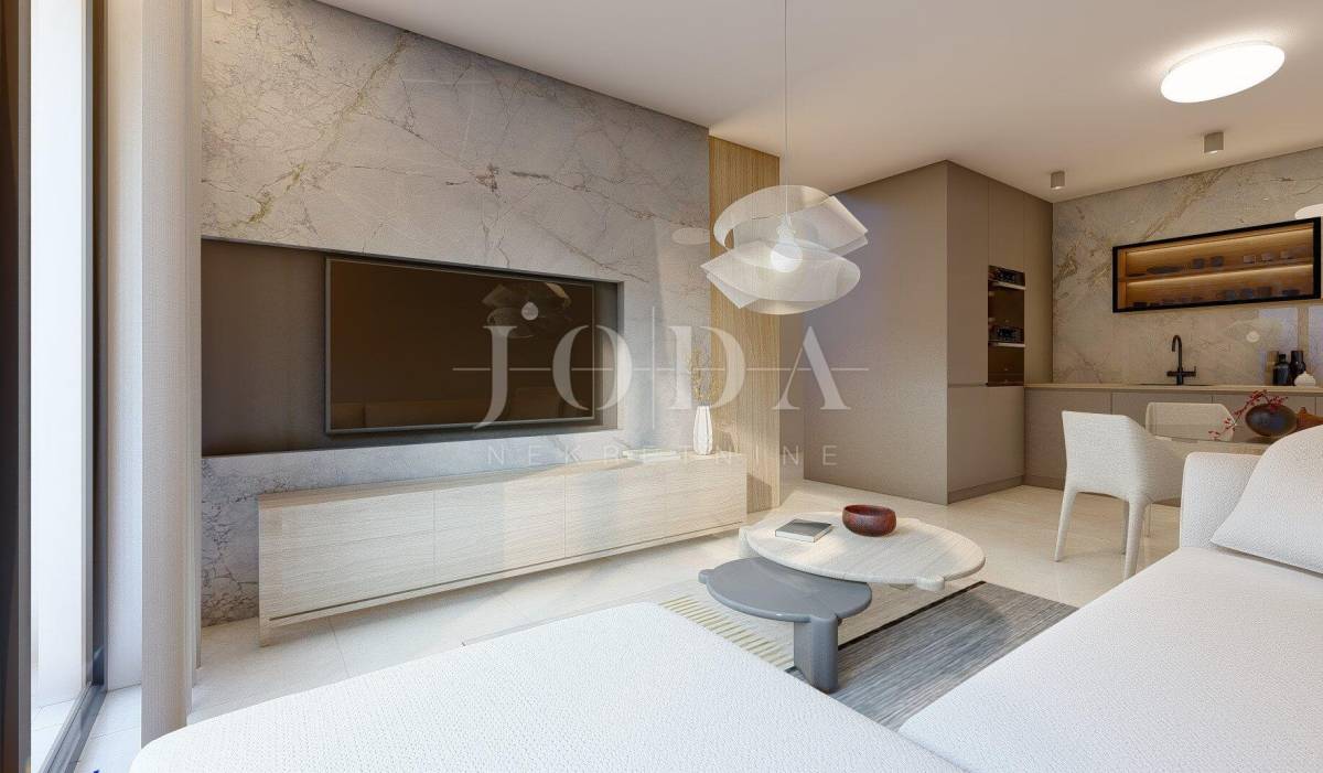 Visoki standard opreme, kvalitetna arhitektonska rješenja te dizajn prostora odlike su ovog stana smještenog u prvoj od tri zgrade novog budućeg modrenog kompleksa u zapadnom dijelu grada.