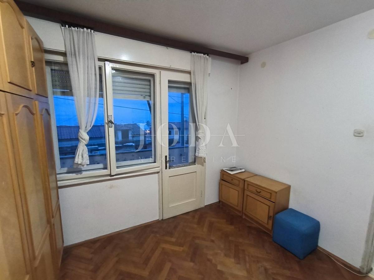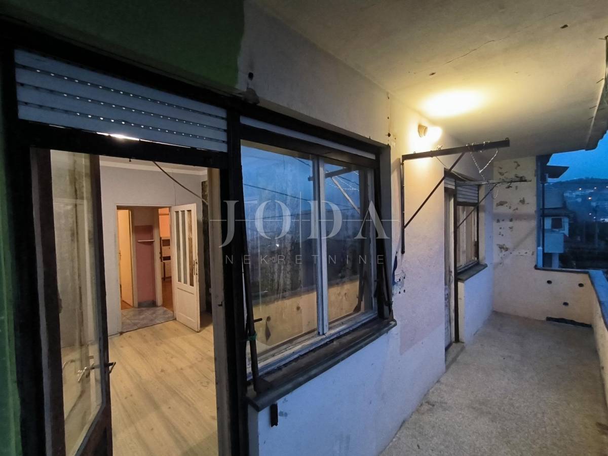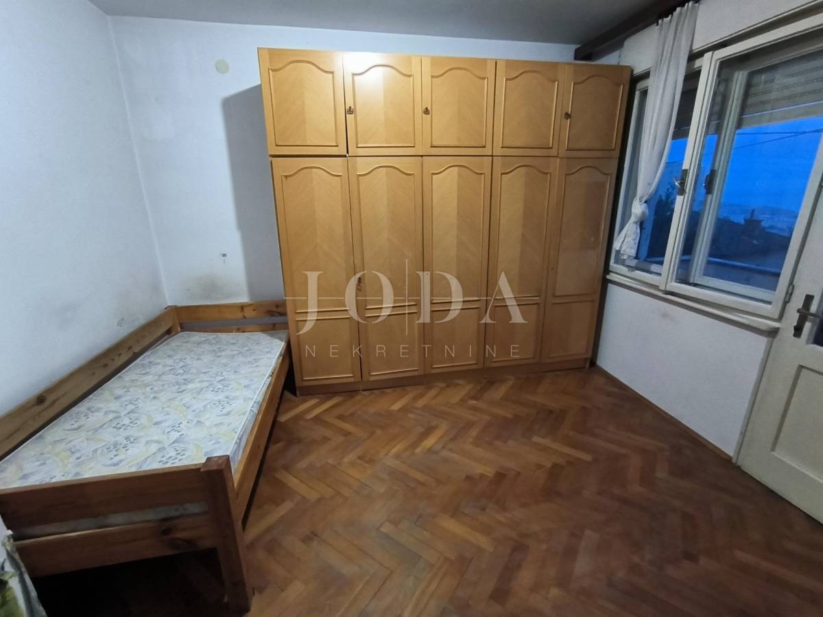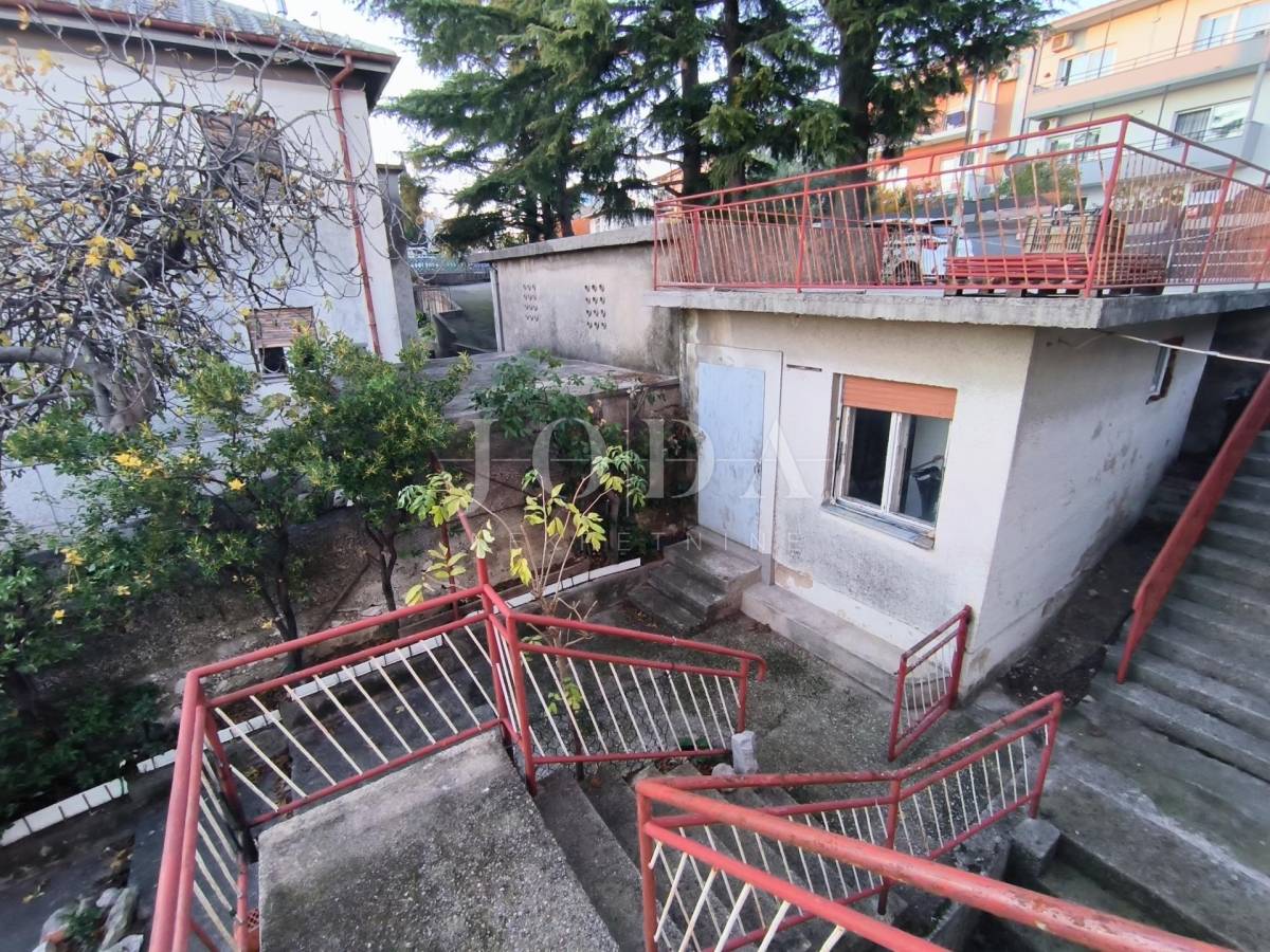 blagovaonicom , tri sobe, kupaonice, spremišta i lođe veličine 75 m2. Stanu pripada parkirno mjesto, pomoćna zgrada, koja se sastoji od spremišta i sanitarnog čvora veličine 14 m2, okućnica veličine 75m. Prostrana loggia iz koje se pruža pogled na more te dodatno spremište i terasa. Stan zahtjeva potpunu adaptaciju ali zbog odličnog rasporeda i velike kvadrature pruža mogućnost za život brojne obitelji i mogućnost izgradnje odvojene garsonjere za najam.Odlična pozicija i blizina svih sadržaja.poželjan kvart za živit ili kao investicija za iznajmljivanje.