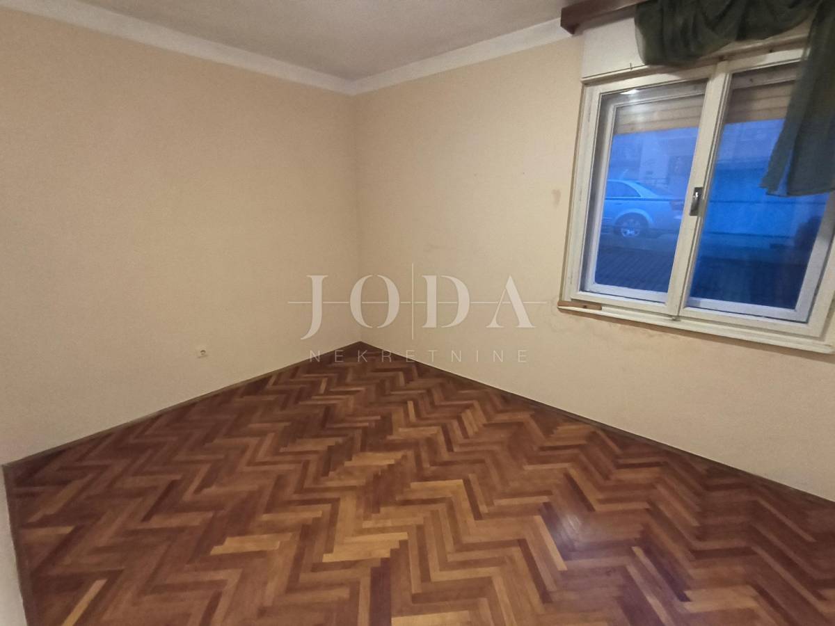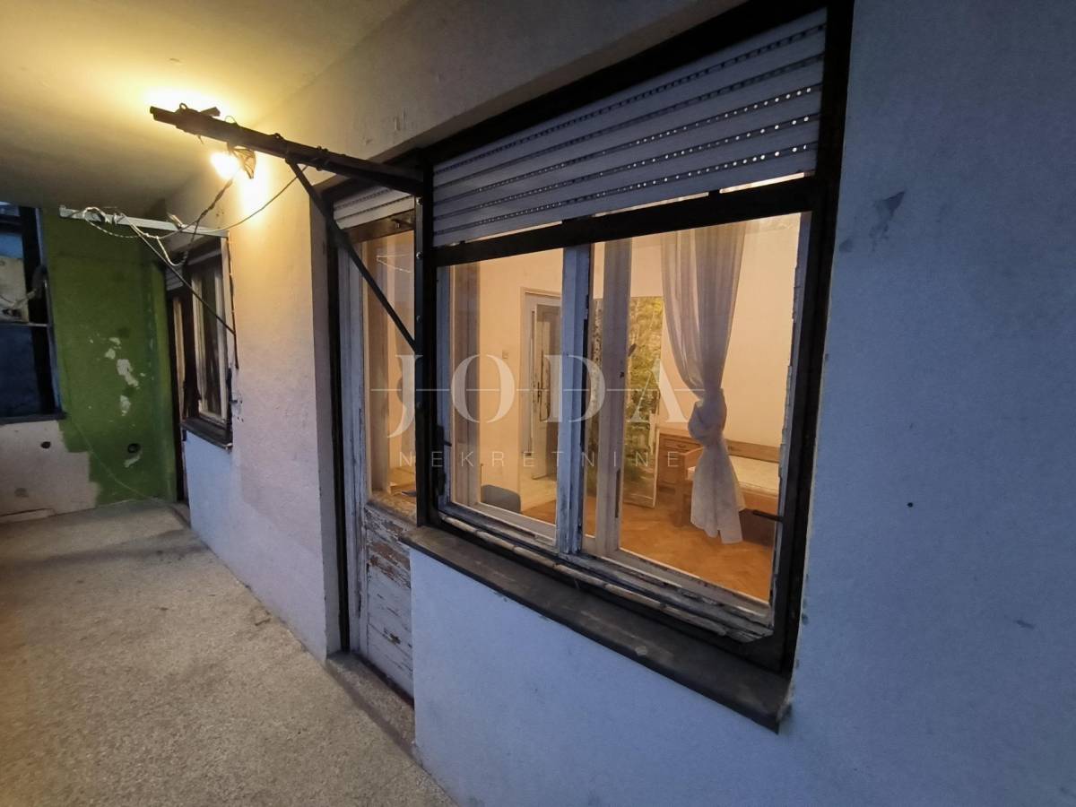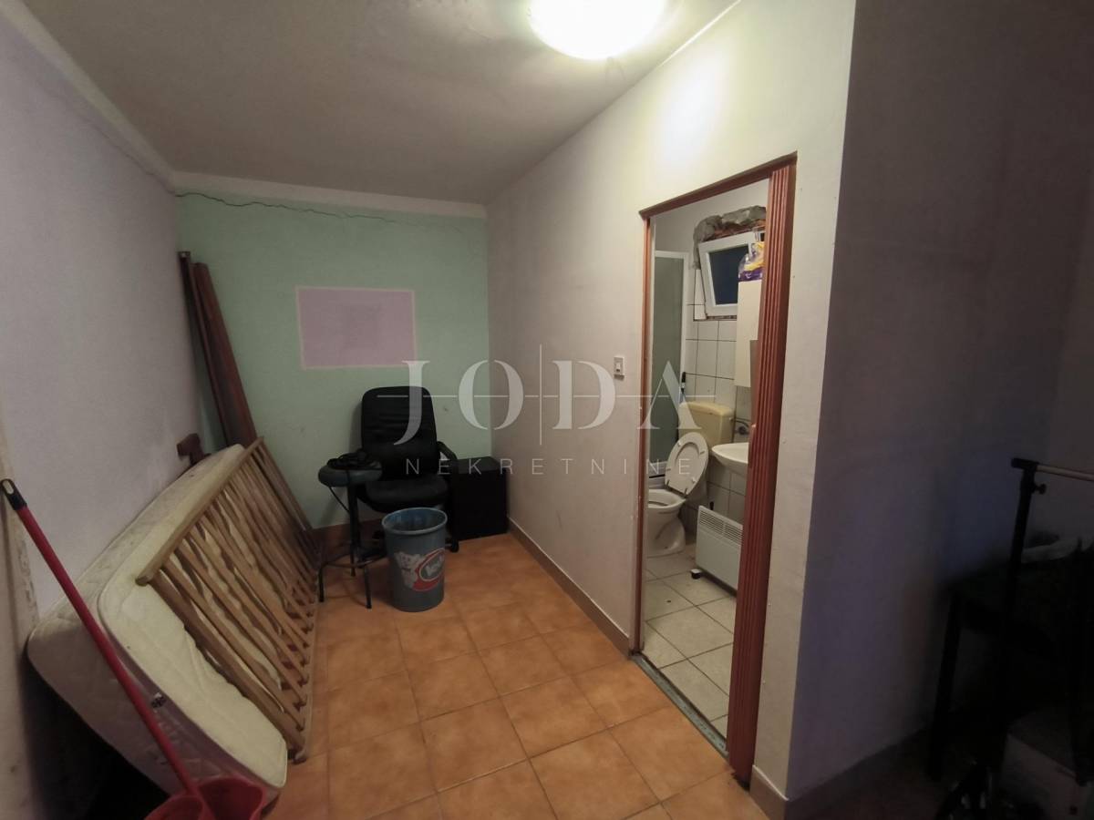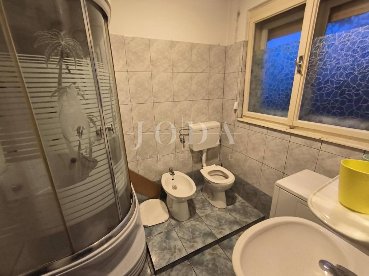 blagovaonicom , tri sobe, kupaonice, spremišta i lođe veličine 75 m2. Stanu pripada parkirno mjesto, pomoćna zgrada, koja se sastoji od spremišta i sanitarnog čvora veličine 14 m2, okućnica veličine 75m. Prostrana loggia iz koje se pruža pogled na more te dodatno spremište i terasa. Stan zahtjeva potpunu adaptaciju ali zbog odličnog rasporeda i velike kvadrature pruža mogućnost za život brojne obitelji i mogućnost izgradnje odvojene garsonjere za najam.Odlična pozicija i blizina svih sadržaja.poželjan kvart za živit ili kao investicija za iznajmljivanje.