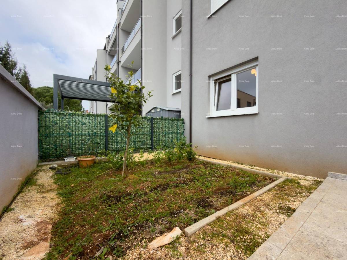 Stan se nalazi u prizemlju novogradnje i sastoji se od dvije spavaće sobe, kupatila, kuhinje, blagovaonice i dnevnog boravka iz kog se izlazi na natkrivenu terasu i vrt.