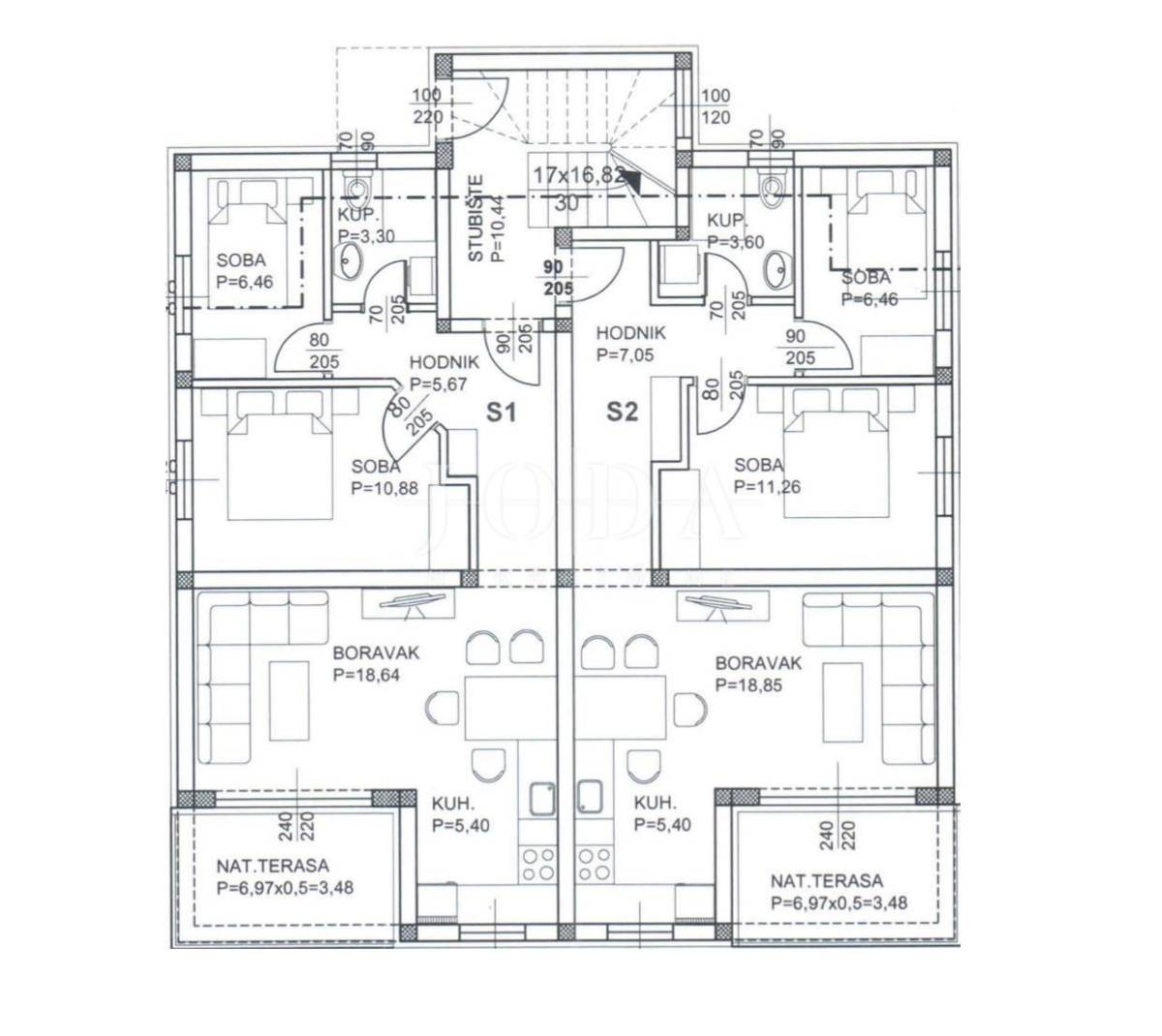 Stan će imati TV priključak i portafon te svoj priključak struje i vode sa svojim mjernim uređajem.