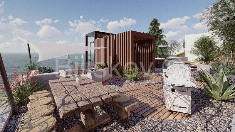 Zemljište je pogodno za izgradnju 3 apartmanska objekta s terasama i otvorenim pogledom na more.