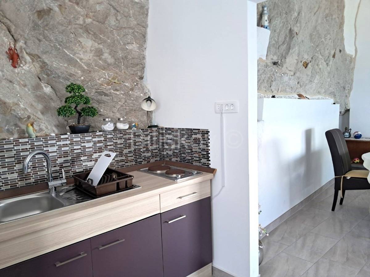Stobreč, u kamenoj kući stan na tri etaže ukupno korisne površine 180m2 s izravnim izlazom na plažu.